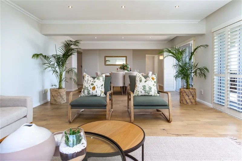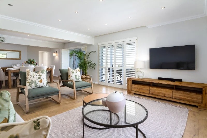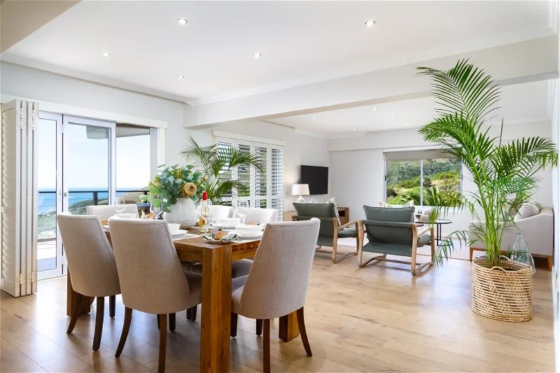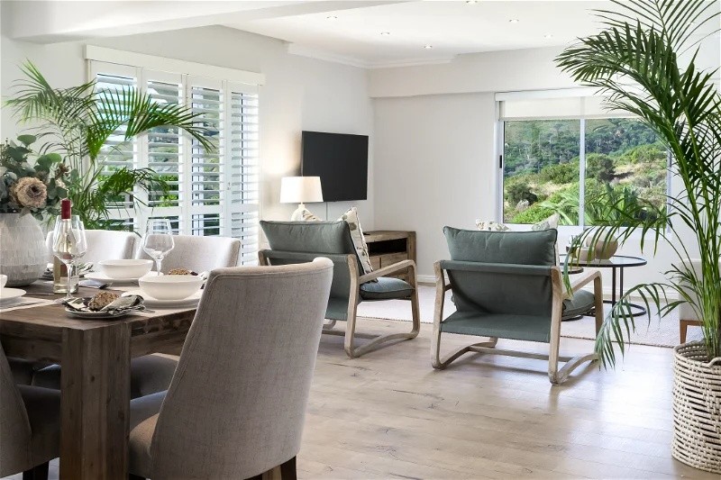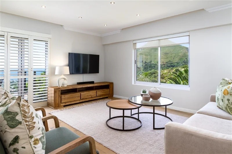 A spacious, recently renovated, 2 en-suite bedroomed home with stunning ocean and mountain views. The home overlooks it’s very own vineyard! The sociable and free flowing living area comprises an elegant dining area and lounge with a fully equipped kitchen. The dining area flows to an outdoor entertaining area making this home ideal for a family or a group of friends. The beautiful bach & promenade with its trendy cafes & restaurants is 5 mins away.