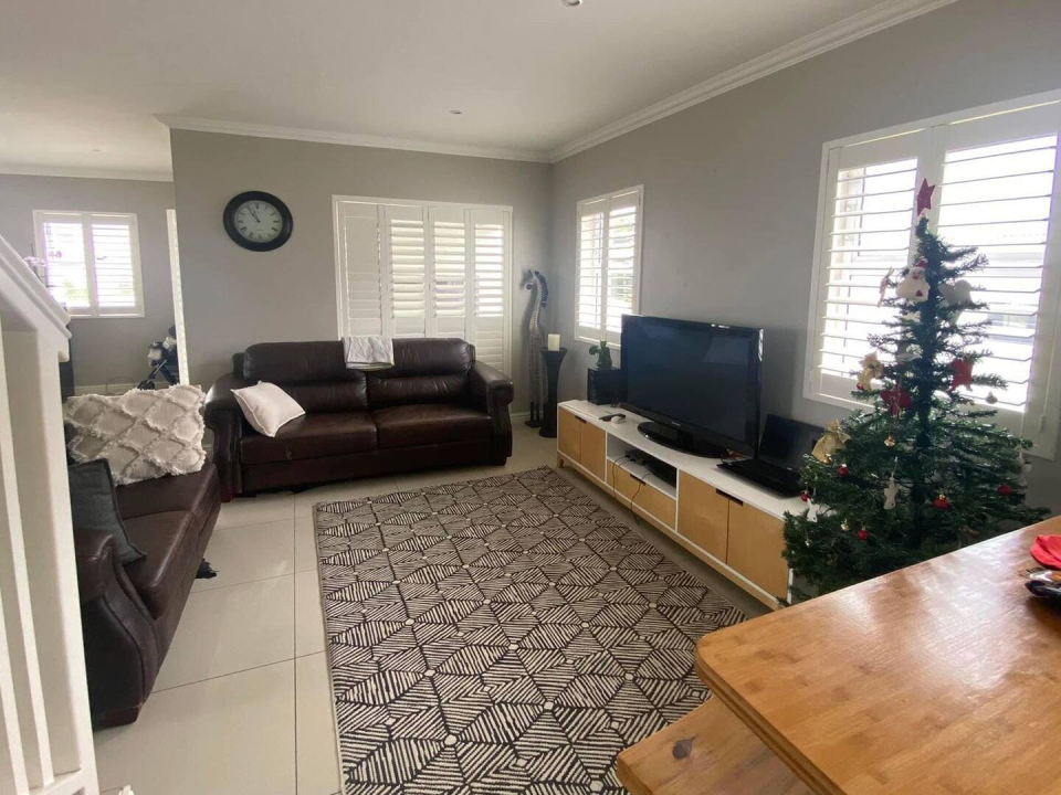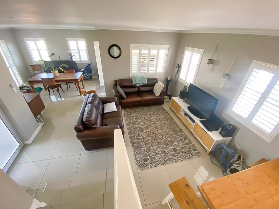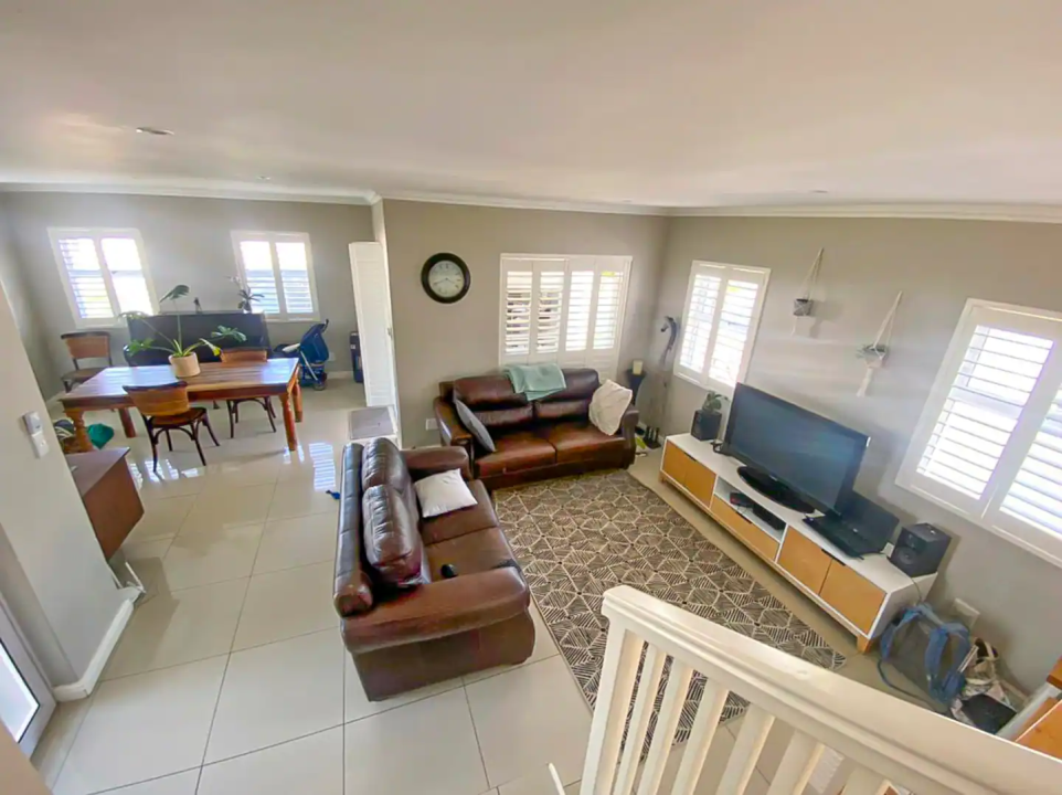 Lovely spacious living area downstairs leading out to a container garden and outdoor BBQ area.