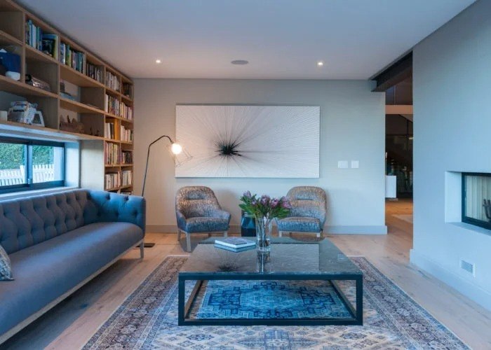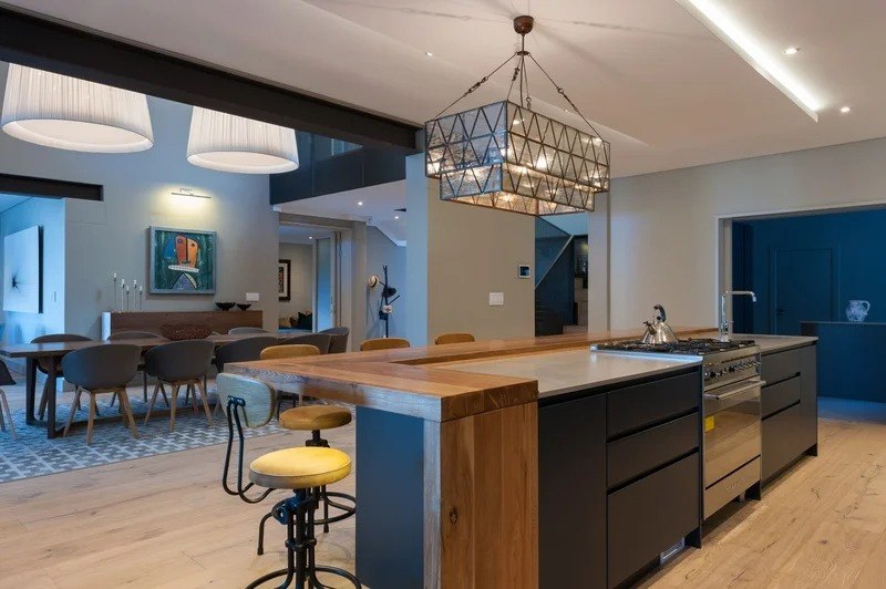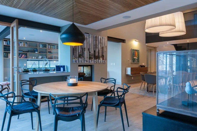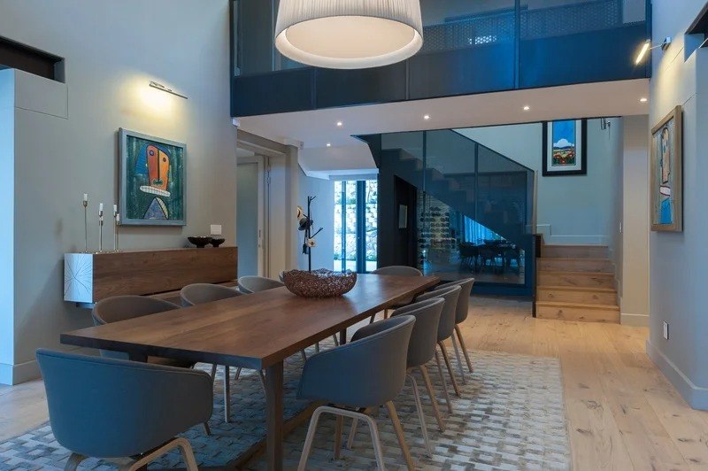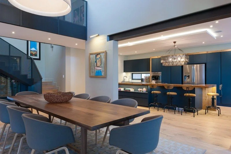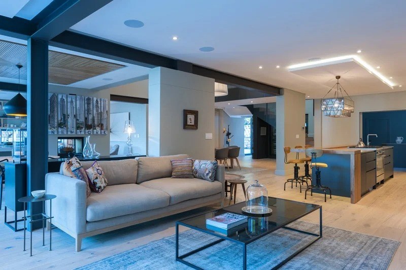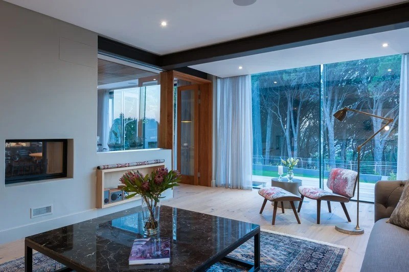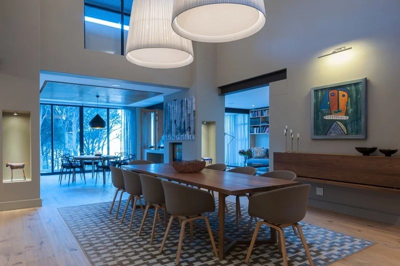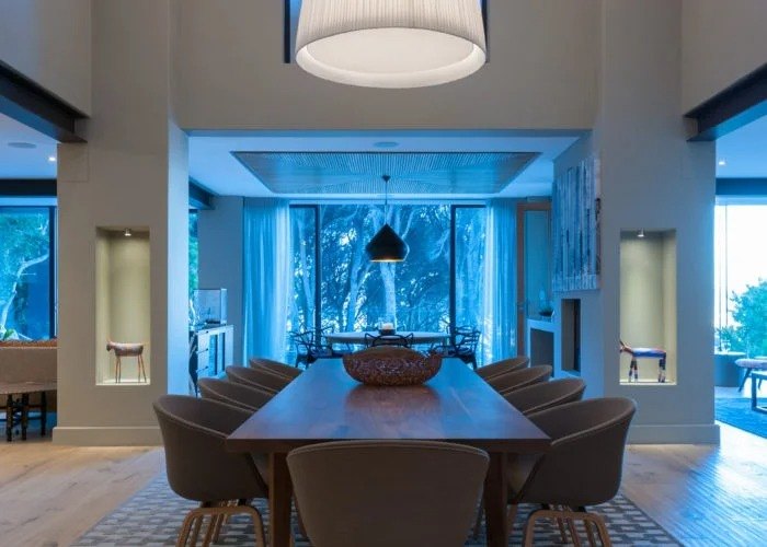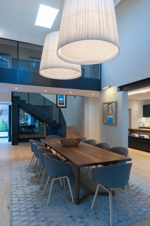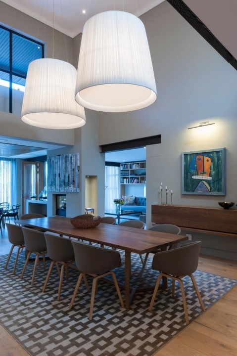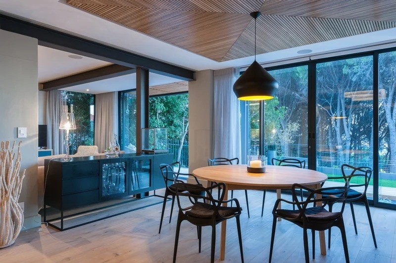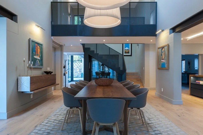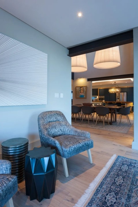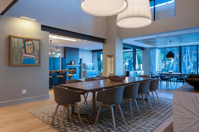 The beautifully furnished living and dining areas are filled with both South African and European art pieces. Stackable sliding doors create a seamless and exceptional flow from indoor to outdoor living spaces with the areas blending into one.