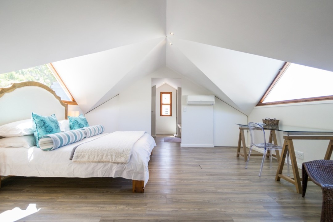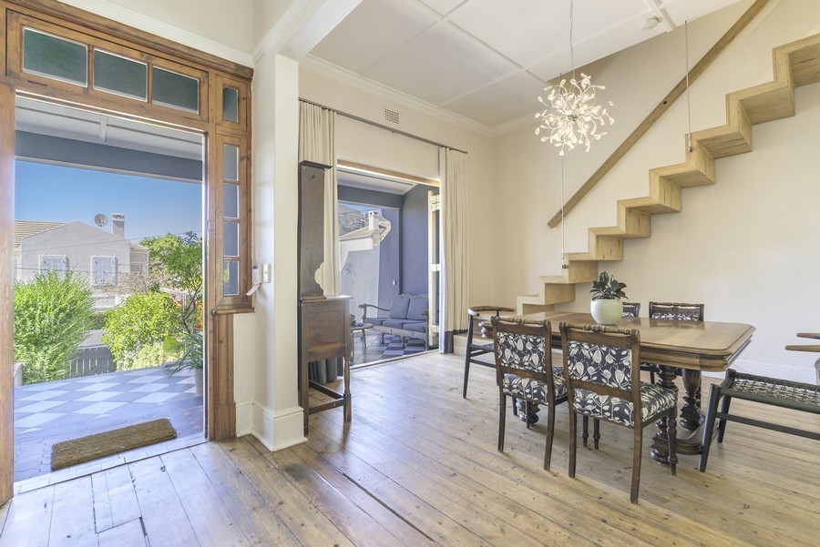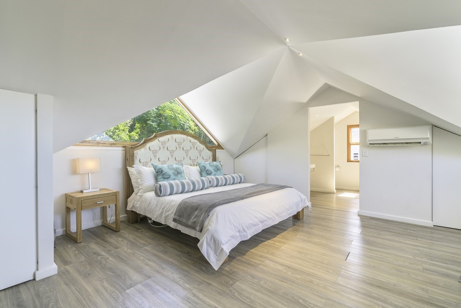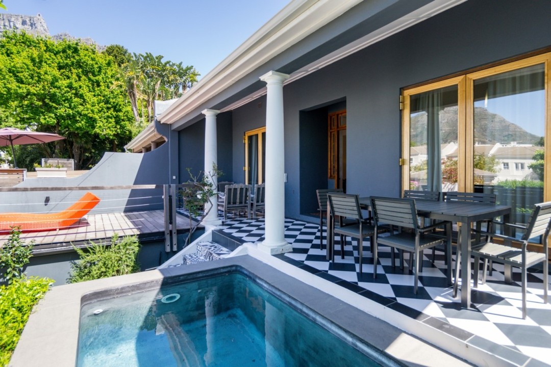 A beautifully restored 3 bedroom old Victorian cottage with plenty of old world charm and all the luxury comforts of modern day living. A truly superb renovation awaits at this holiday cottage high above Cape Town on the slopes of Table Mountain. The cottage features open plan living and kitchen leading onto a patio with deck chairs and splash pool. Both bedrooms downstairs are en-suite with the main bedroom leading out to s small courtyard garden at the back. The loft bedroom upstairs is also en-suite and offers great views over the city, and up towards Table Mountain.