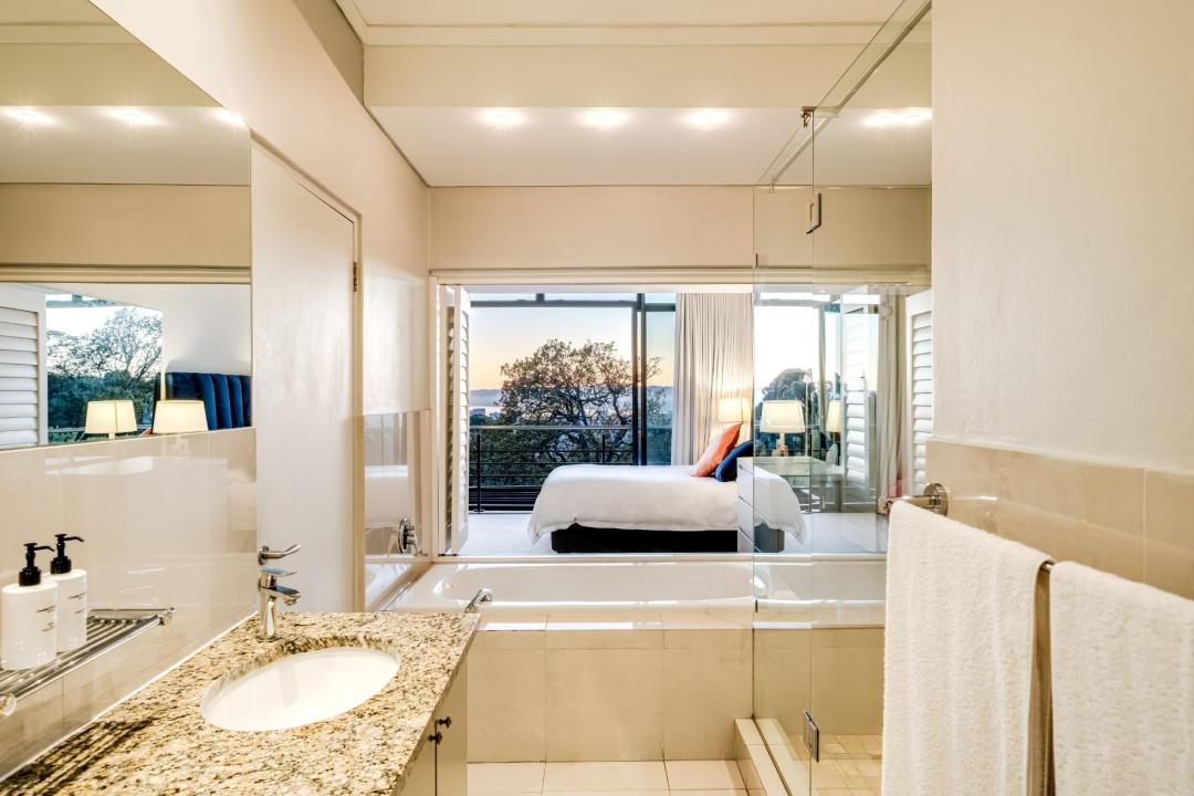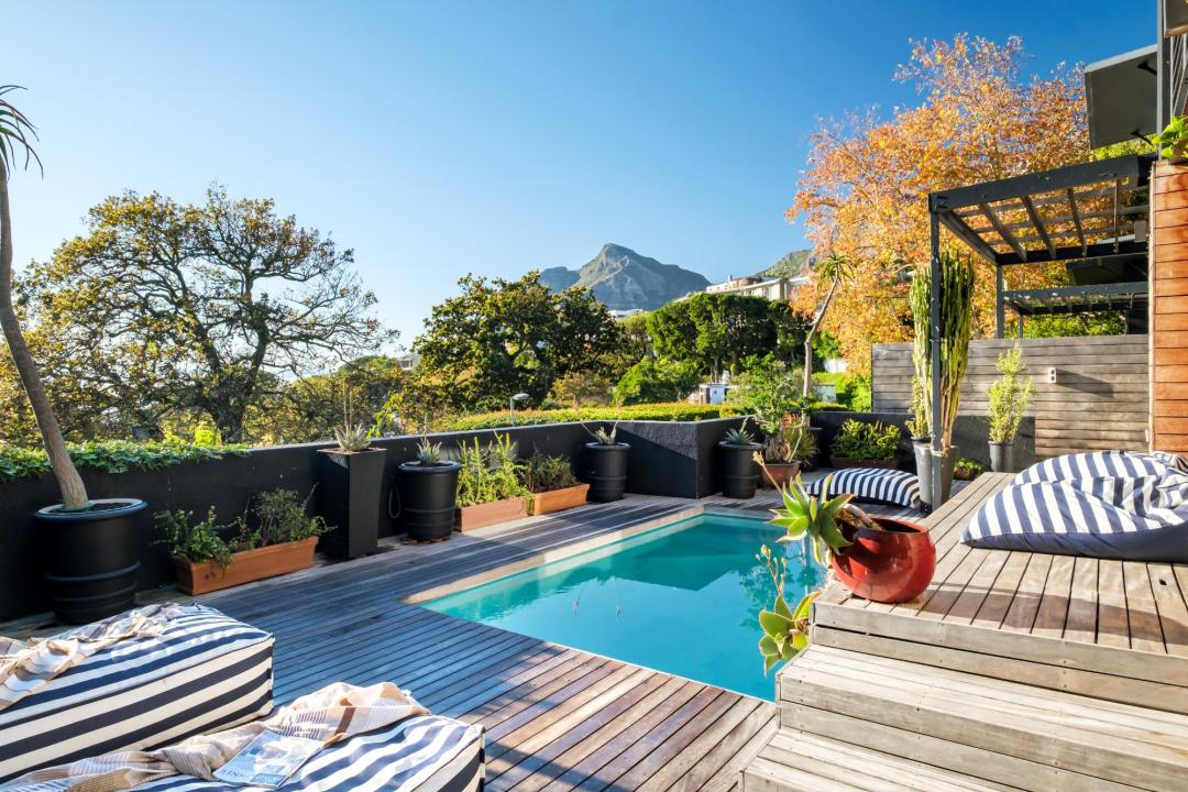 Nestled in the sought-after suburb of Higgovale, Higgo Terrace offers an exceptional stay with panoramic views of both Table Mountain and the vibrant cityscape. This beautifully appointed home features three spacious bedrooms, each with air conditioning and en-suite bathrooms, ensuring comfort and privacy. The main bedroom boasts a king-size bed, a cosy seating area, and an ensuite, while the second room offers a queen-size bed, a desk, and a bath and shower combination. The third bedroom features a king-size bed and provides access to a private deck with seating. The open-plan living area is designed for relaxation and entertainment, with a wood fireplace, seating for six, and direct access to the outdoor pool and dining areas. The modern kitchen, complete with a gas hob, Nespresso machine, and breakfast bar, adds a touch of convenience. Outside, the pool, sun loungers, and BBQ area create the perfect setting for enjoying the stunning mountain and city views. With easy access to Table Mountain, Camps Bay, and the city centre, Higgo Terrace combines serenity with a prime location.