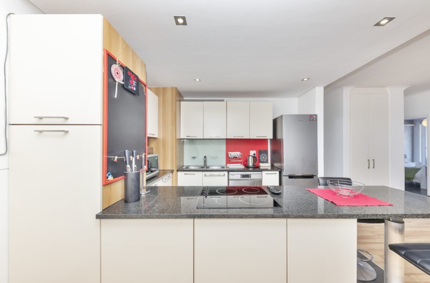 Nestled in one of Cape Town’s most scenic and vibrant neighborhoods, Horizon Bay 201 invites you to unwind in style. The apartment features a sleek, fully equipped kitchen complete with contemporary countertops, ample cupboard space, a dishwasher, Nespresso machine, and a washer – everything you need for effortless self-catering, whether you’re whipping up a quick breakfast or a gourmet dinner.