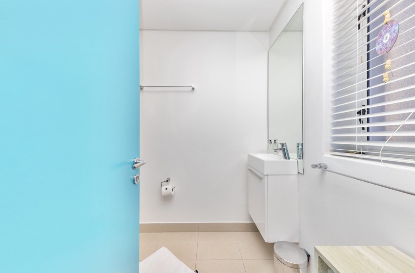 The open-plan lounge area is tastefully designed for both relaxation and entertainment. Sink into the plush seating as you enjoy high-speed WiFi and a Smart TV with Netflix – ideal for cozy movie nights after a day of sun and surf. Step through the sliding doors onto your private balcony, where comfortable outdoor seating awaits. Here, you can savor your morning coffee while watching the waves roll in, or unwind with a glass of wine as the sun sets in a blaze of color over the ocean.
