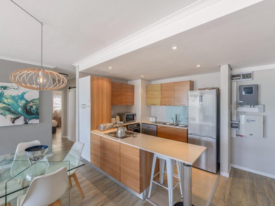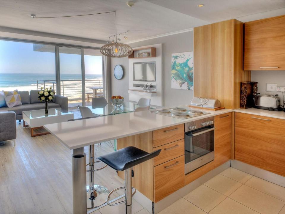 Pull back curtains from floor-to-ceiling windows or retreat to the balcony and admire postcard-worthy views of the beach. Features include a full kitchen with modern appliances and beach towels and chairs. Most importantly, this apartment is equipped with an inverter, ensuring that it remains unaffected by loadshedding.
