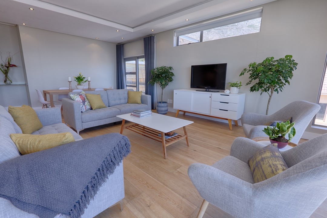 The living room is light and comfortable and you can drink in the panoramic sunsets from the couch or wander onto the balcony for sundowners outside.