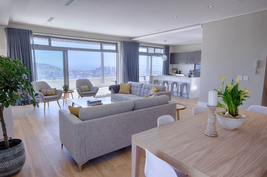 Horizon Views Penthouse is a stunning apartment in the City Bowl with secure off street parking. With balconies on all sides you have stunning views on all sides. The penthouse is tastefully furnished and offers breath-taking views over the city bowl, Table Bay, Lion’s Head and Table Mountain.