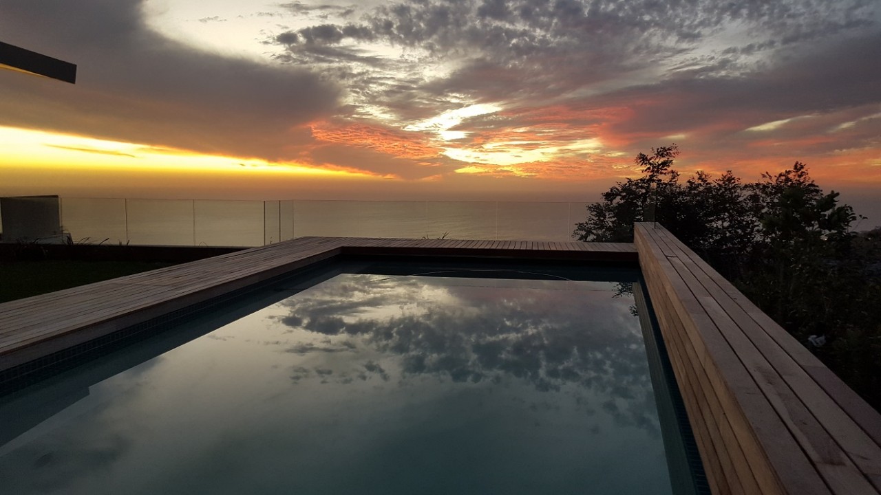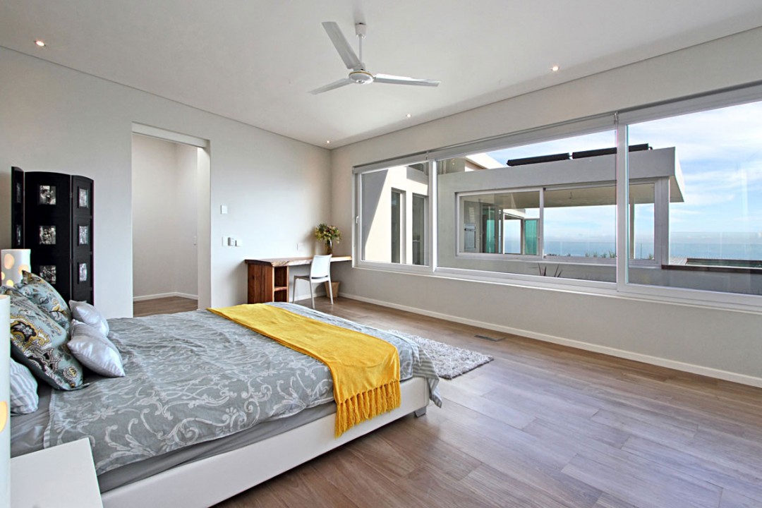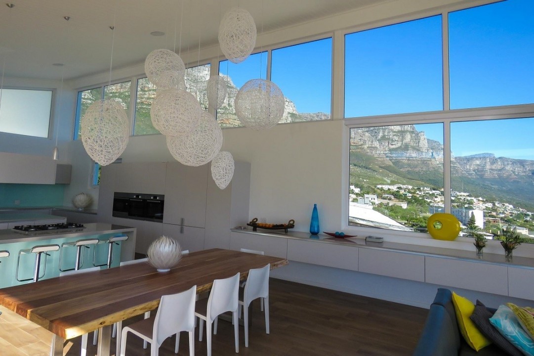 This newly built property offers spectacular sea and mountain views and comprises of 3 spacious bedrooms, all with ensuite bathrooms. The Master bedroom has a King size bed, bedrooms 2 and 3 have 2 extra length single beds which can also be converted into King size beds on request. The flow throughout the home makes this property perfect for easy summer living in the prestigious Camps Bay.