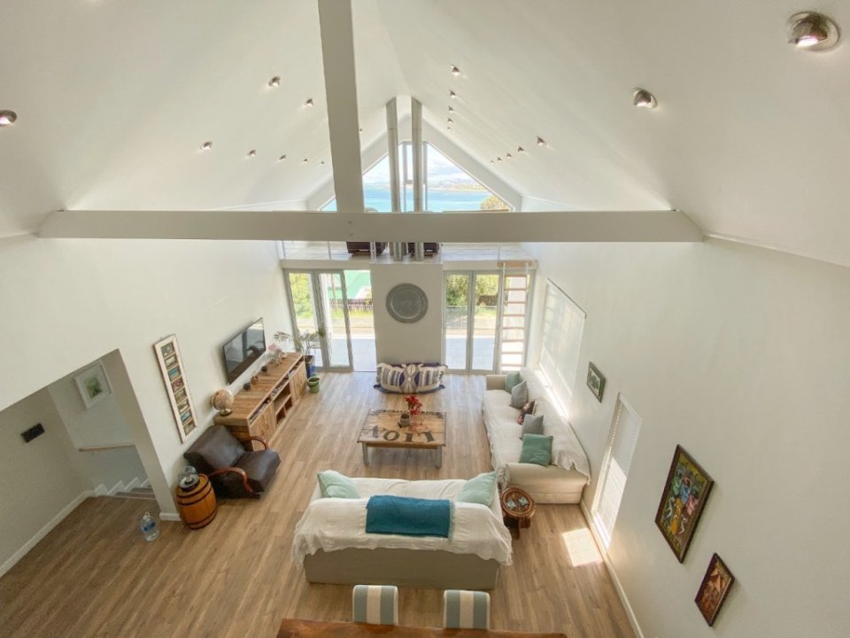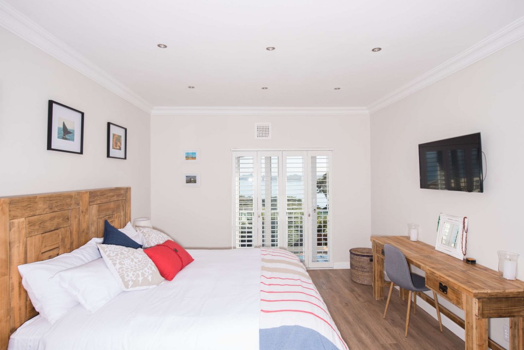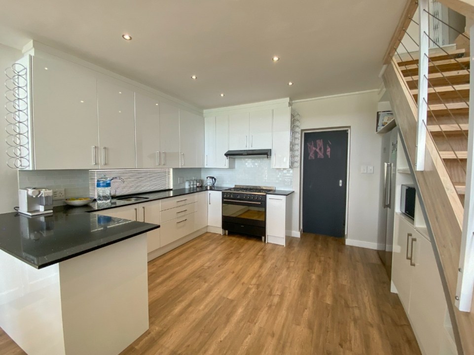 This newly renovated modern bright sunny 3 bedroom house boasts fantastic views of False Bay and the Helderberg Mountain range. You will not miss a sunset while preparing meals in our well-appointed spacious kitchen or a sunrise from the comfort of your bed. Enjoy modern appliances like a Smeg oven and gas hob, side by side Grundig Fridge and Freezer, microwave, LG coffee machine and soda stream maker. Dishes are taken care of by the dishwasher in the scullery area!