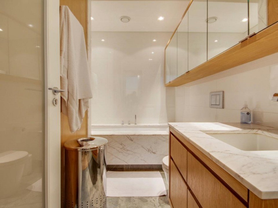 King bed En-suite: bath / shower / double vanity / underfloor heating / heated towel rails/ Gas fireplace /Sound system /Balcony /Aircon /TV with Dstv & sound system/ Intercom /Walk in closet/dressing room/