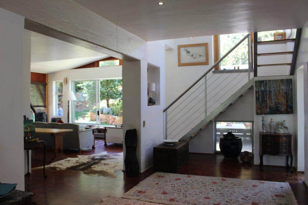 house and steps up to bedrooms. Drop off from main bedroom window.