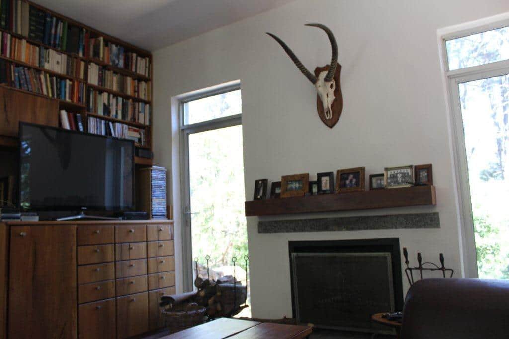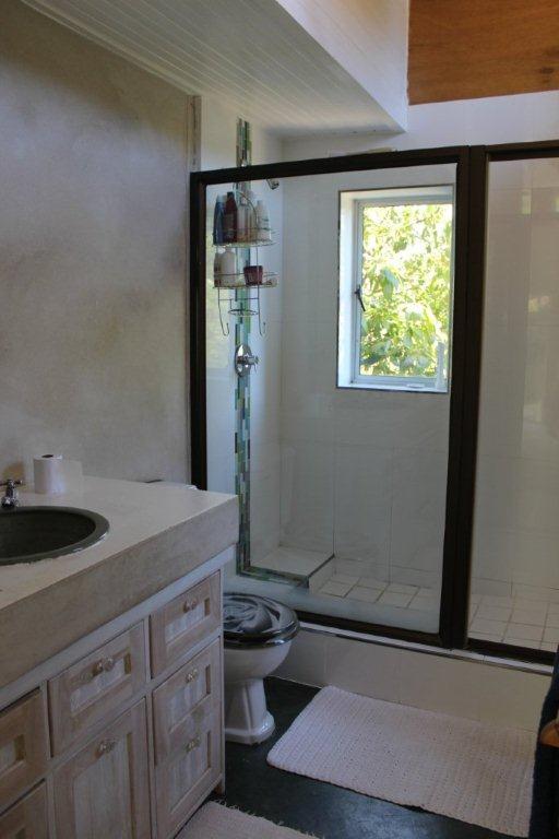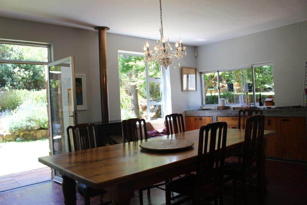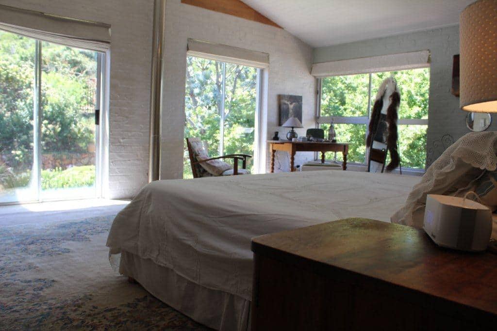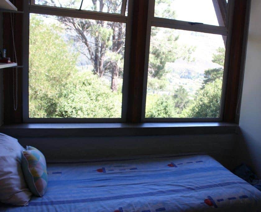 There are 4 bedrooms upstairs. The main bedroom has extensive views of the mountains and Table Mountain National Park. There are 3 further bedrooms – two with ¾ beds and one with a single bed. The main bedroom has en-suite bathroom while the other three bedrooms share a bathroom. There is a stunning pool area that overlooks Hout Bay and more mountains.