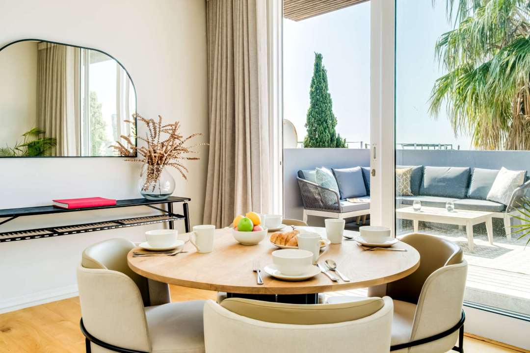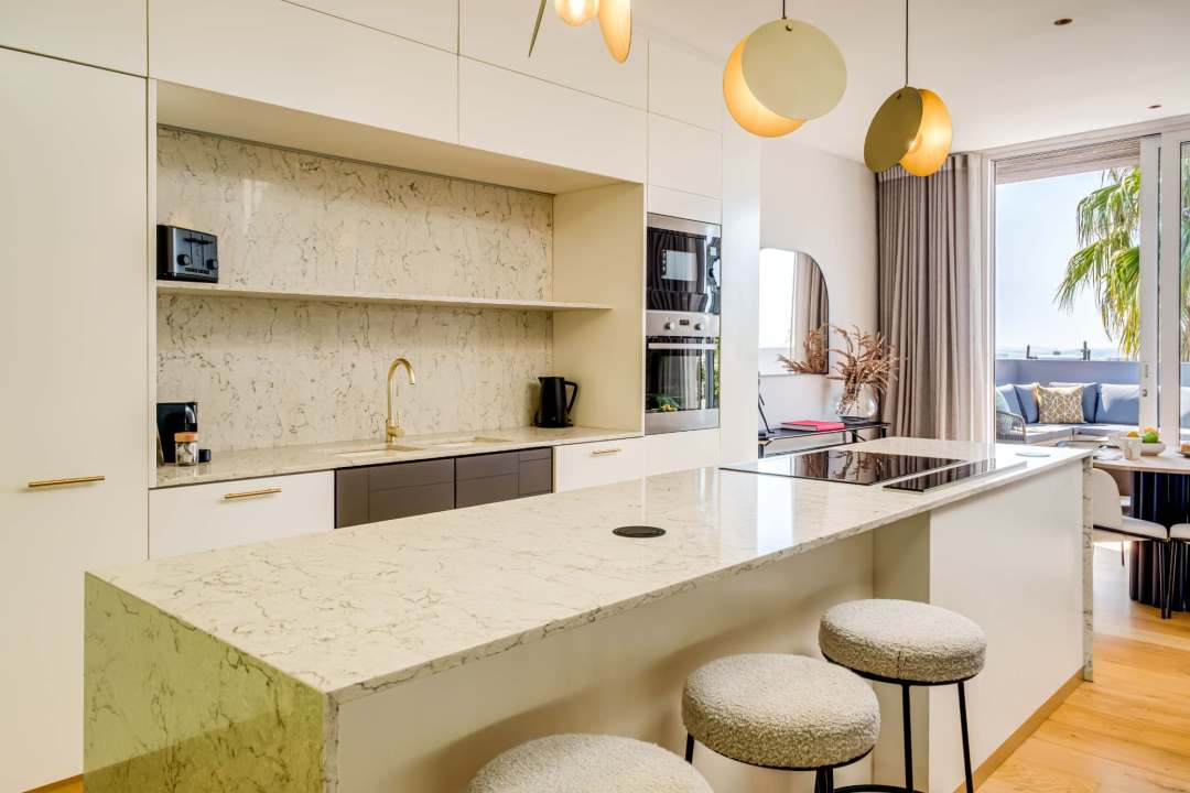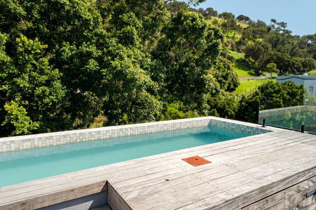 Ishani is an inviting retreat nestled in the vibrant suburb of De Waterkant. This modern holiday rental combines comfort and style, making it an ideal getaway for travelers. The main bedroom features a king bed with direct access to the courtyard, complemented by an open ensuite with a bath, shower, and double vanity. The second bedroom offers a queen bed and its own ensuite, ensuring privacy for all guests. The contemporary kitchen is equipped with an electric hob, Nespresso machine, and dishwasher, perfect for meal preparation. A breakfast bar and a dining area provide space for enjoyable meals together. The living area features seating for four and a TV, with access to a balcony that encourages outdoor lounging. Outside, a private pool is surrounded by seating and a dining area for alfresco meals, all with stunning mountain and sea views. An alarm system adds an extra layer of security. Ishani serves as a perfect sanctuary in De Waterkant, offering a blend of comfort and style in a beautifully designed setting.