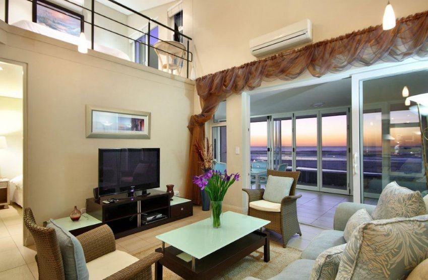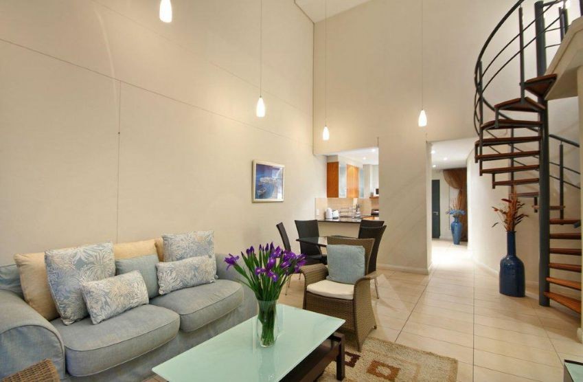 Take one step through the front door of this three bedroom apartment in Island View, Lagoon Beach, and immediately feel at home with the beauty and luxury. Let the sense of freedom overwhelm you in a living area with high walls and a spiral staircase that gives this area its spacious feel with a gentle sense of character brought by the stylish and homely interior.