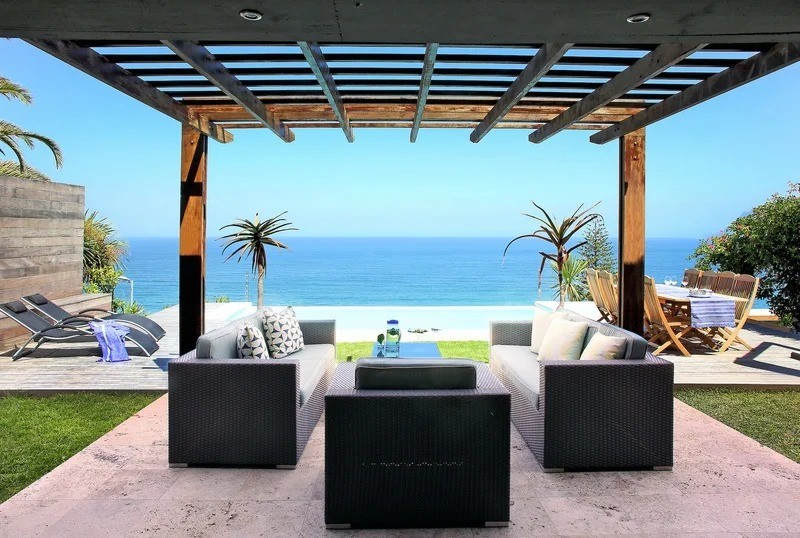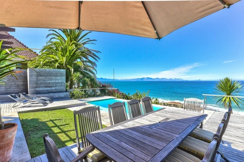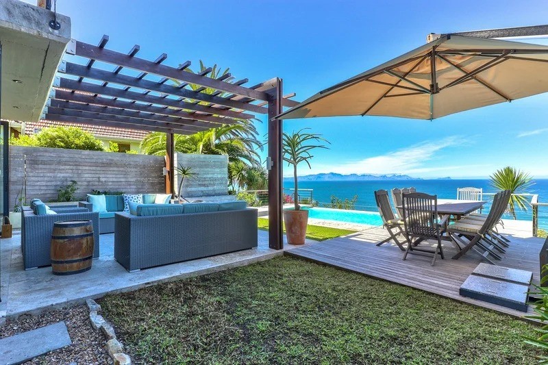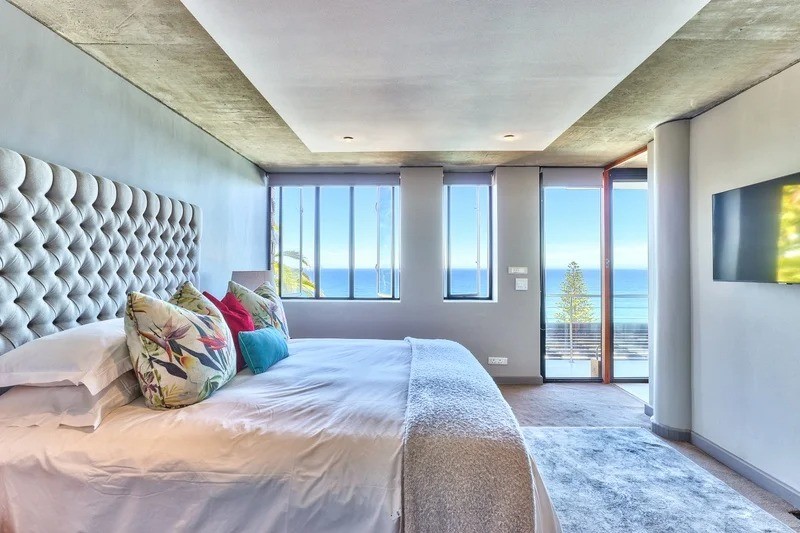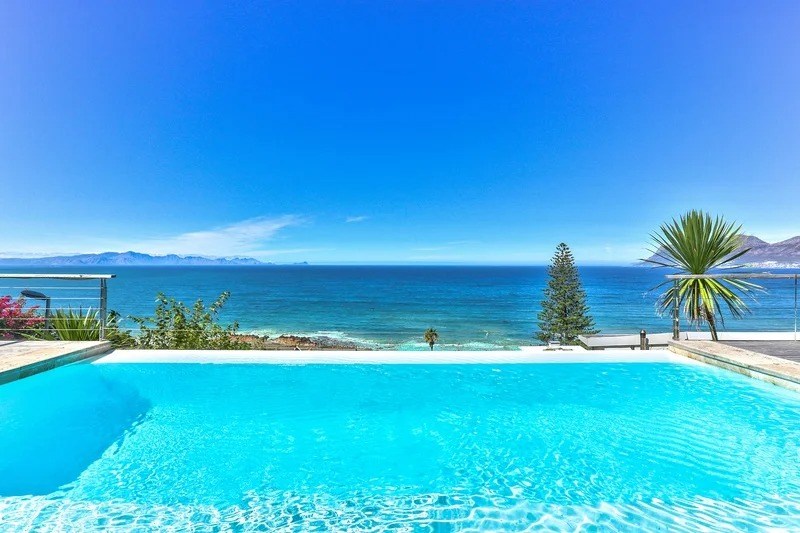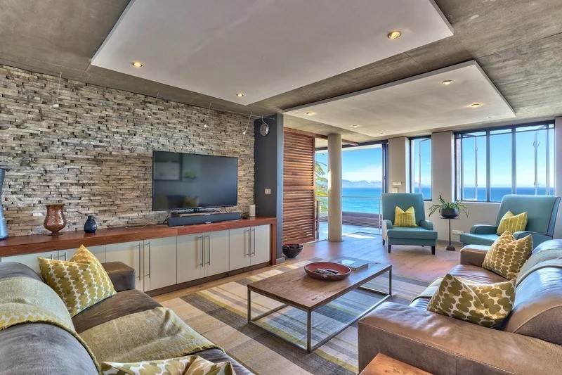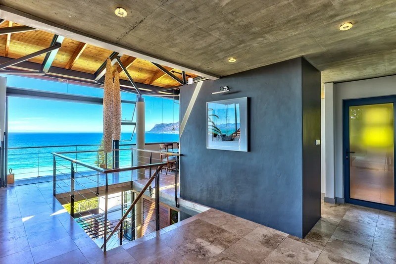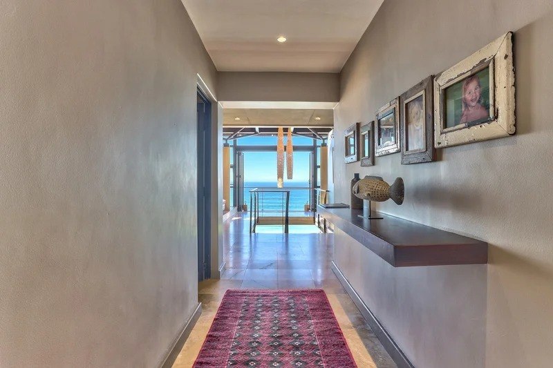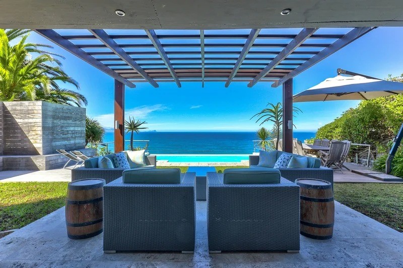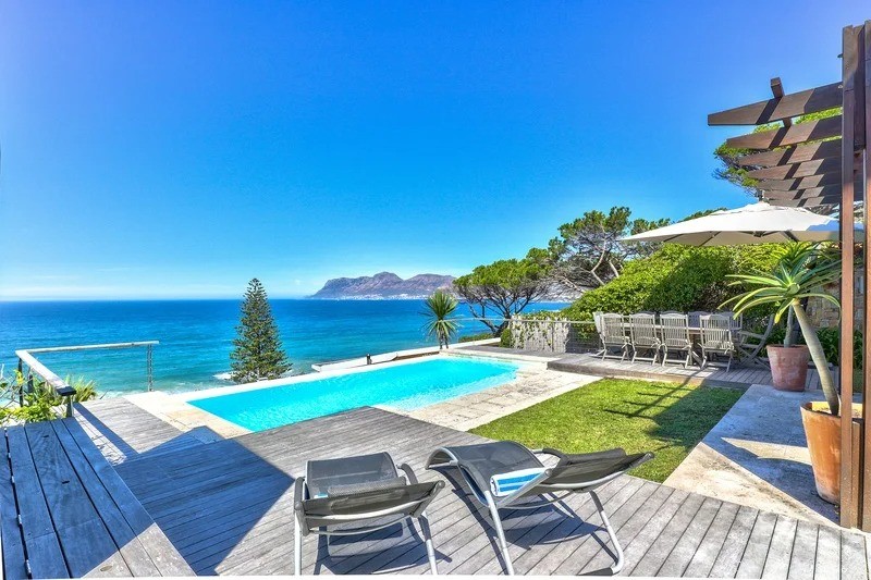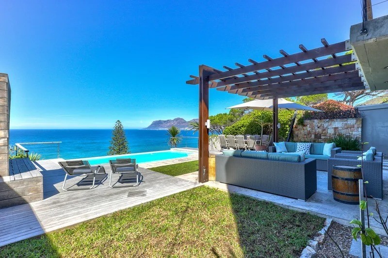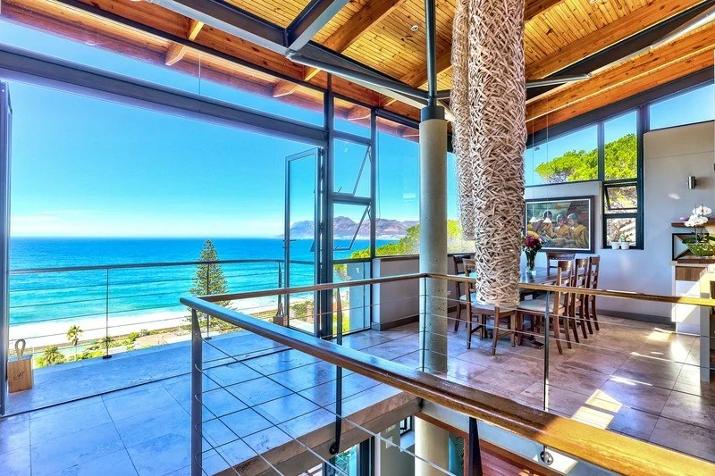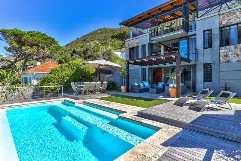 Named after a century-old stairway that links the house to the coast-hugging Main Road, Jacob’s Ladder does feel like a top rung on the way to heaven. Open your front door and you’re drawn in by an enormous blue horizon – as inviting as a cruiseliner heading out to sea. Turn back and glimpses of the perpendicular mountain, virtually in your backyard, root you back in terra firma. With four bedrooms, two lounges and several dining options spread across three levels, and a pool that feels almost cantilevered off the mountain, Jacob’s Ladder is designed for easy living, in one of the most sought-after suburbs on the Cape’s pretty south Peninsula coast.