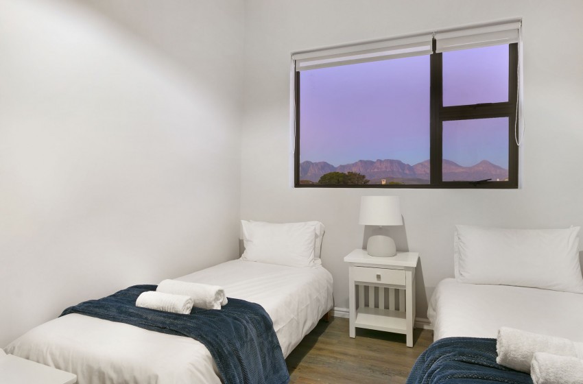 The interior includes a neutral finish, with cosy spots for you and your travel companions, to enjoy the natural scenery while you are lounging in the apartment. The kitchen is fully-equipped to provide you with the perfect self-catering holiday experience. The lounge consists of a large couch, a TV, as well as WIFI connection and access to DSTV. The lounge looks out onto the ocean while the kitchen gives you a scenic view of the Helderberg Mountains.