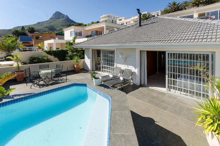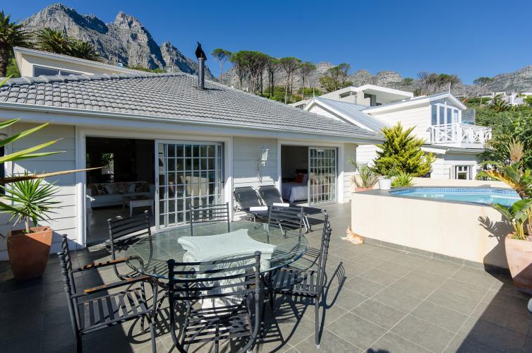 Enjoy a swim, in the sparkling plunge pool, or a barbecue while enjoying the gorgeous mountain views from a large sea facing terrace. Alternatively, leave the car at home and stroll down to the beachfront for a swim in the sea or sample the menus at a variety of fashionable restaurants on the beachfront. Jasmine Villa is, therefore, in the perfect location for a relaxing holiday in Cape Town.