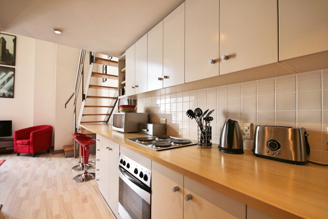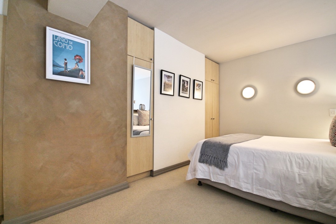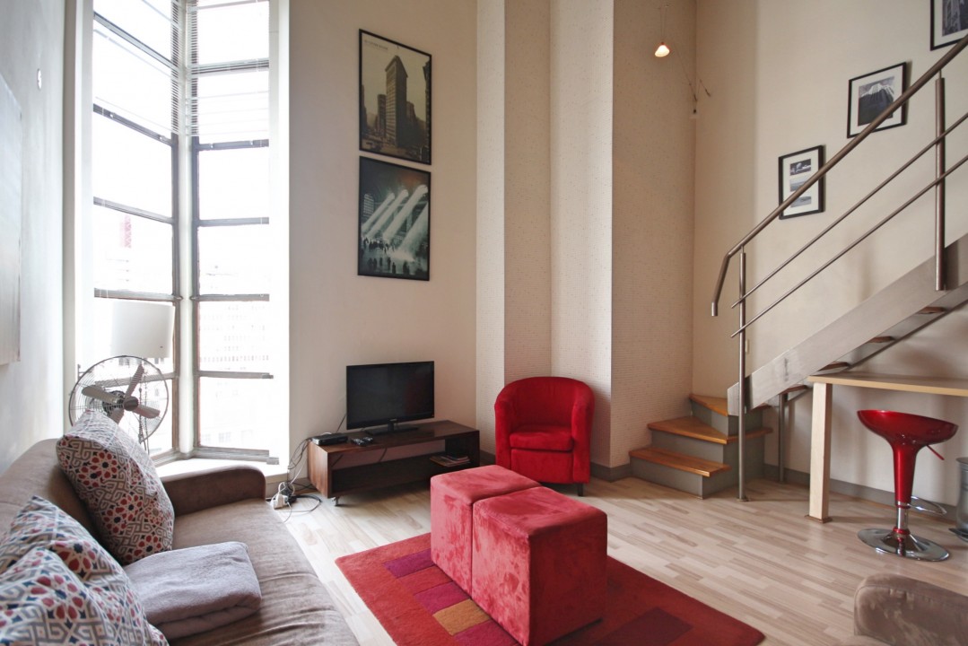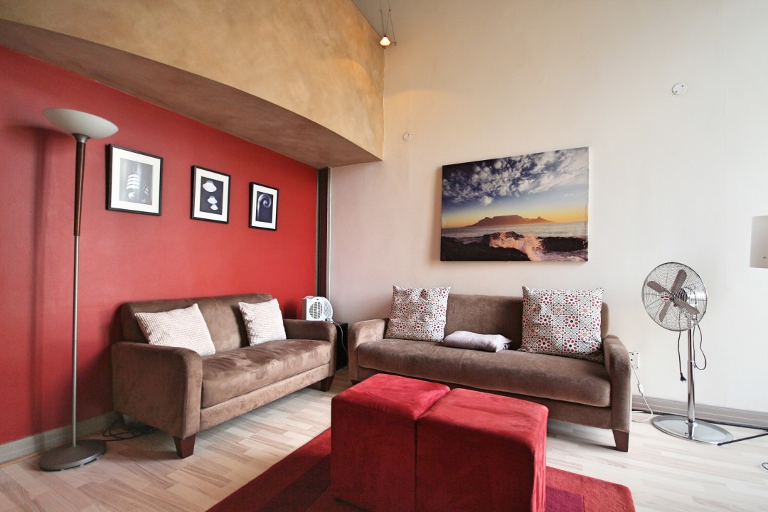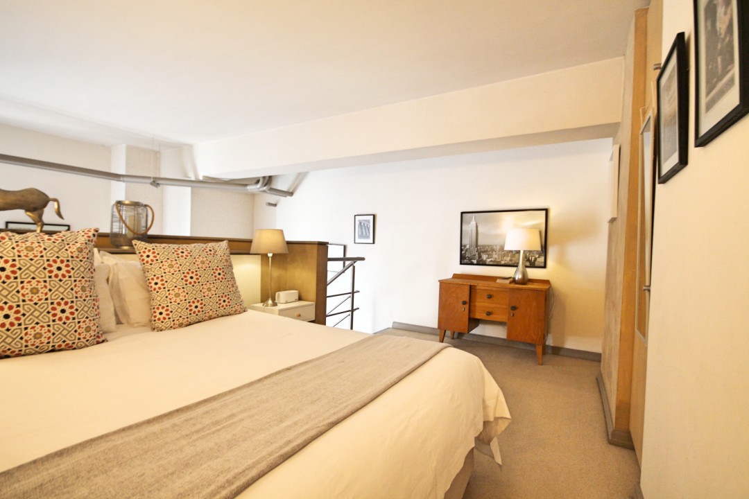 This 1-bedroom, 1-bathroom property is a true loft apartment, with its elegantly furnished main bedroom.The large open-plan lounge /kitchen area is beautifully furnished and well equipped for a comfortable stay. The two triple-story bay windows allow for plenty of light and space and the kitchen is fully equipped. Situated in the art deco building, Mutual Heights the apartment has an assigned parking bay and provides easy access to a rooftop swimming pool, located in the adjacent complex. Located on Darling Street in Cape Town the unit is walking distance to a variety of shops, tourist attractions and restaurants.