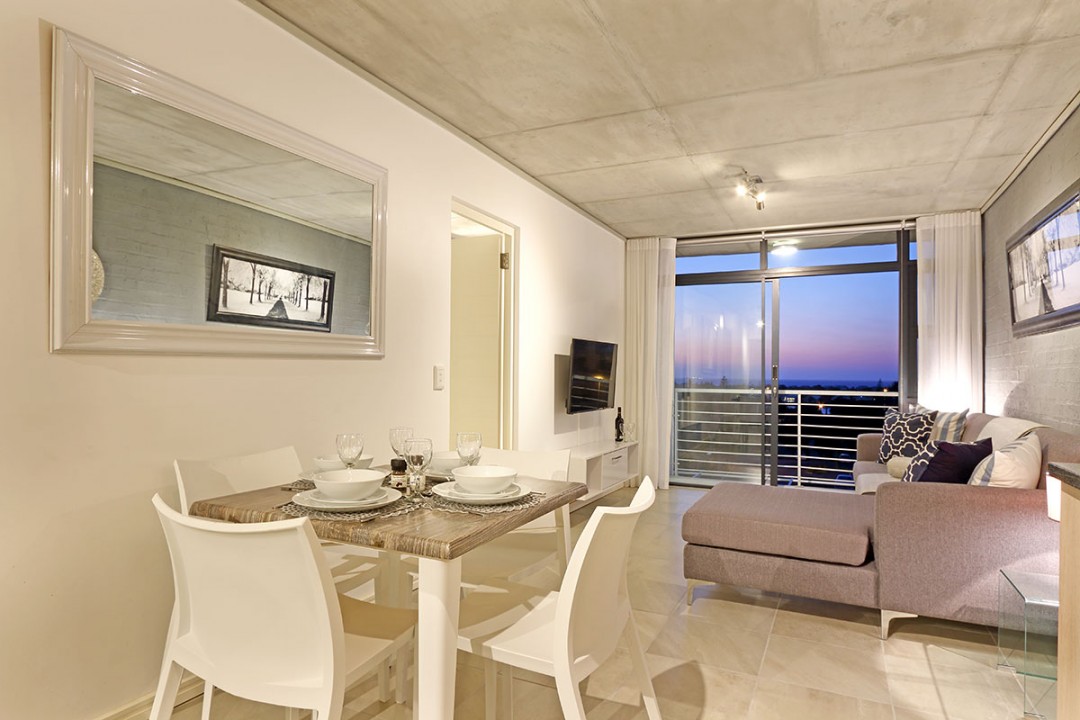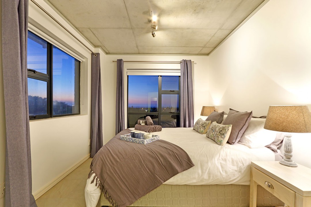 This apartment has views of Table Mountain and is in close proximity to Century City. Not only can you wake up with a spectacular view, but you can also get some retail therapy.