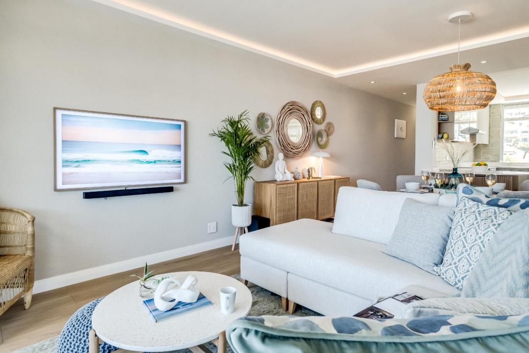 Kyanos is a modern, stylish (renovated in November 2024) apartment nestled in the heart of Camps Bay, just across the road from Camps Bay beach and from the Promenade with shops and restaurants. With breathtaking sea and mountain views, this stunning 2 bedroom apartment offers an inviting space, blending sleek design with beach-inspired aesthetics. The main bedroom features a king-sized bed, air conditioning, and access to the balcony with sea views, while the second bedroom offers king-sized bed and views of the Twelve Apostles. Both bedrooms come with modern en-suite bathrooms. The open-plan living area, thoughtfully designed, boasts sea views, air conditioning, and access to the balcony, perfect for unwinding and taking in the ocean breeze. A fully-equipped kitchen with a breakfast bar overlooks the mountains, and the apartment includes convenient amenities such as a Nespresso machine, washer, and dishwasher. Steps from the beach, Camps Bay Promenade and some of Cape Town’s best attractions, Kyanos is the perfect place to spend time in Cape Town.