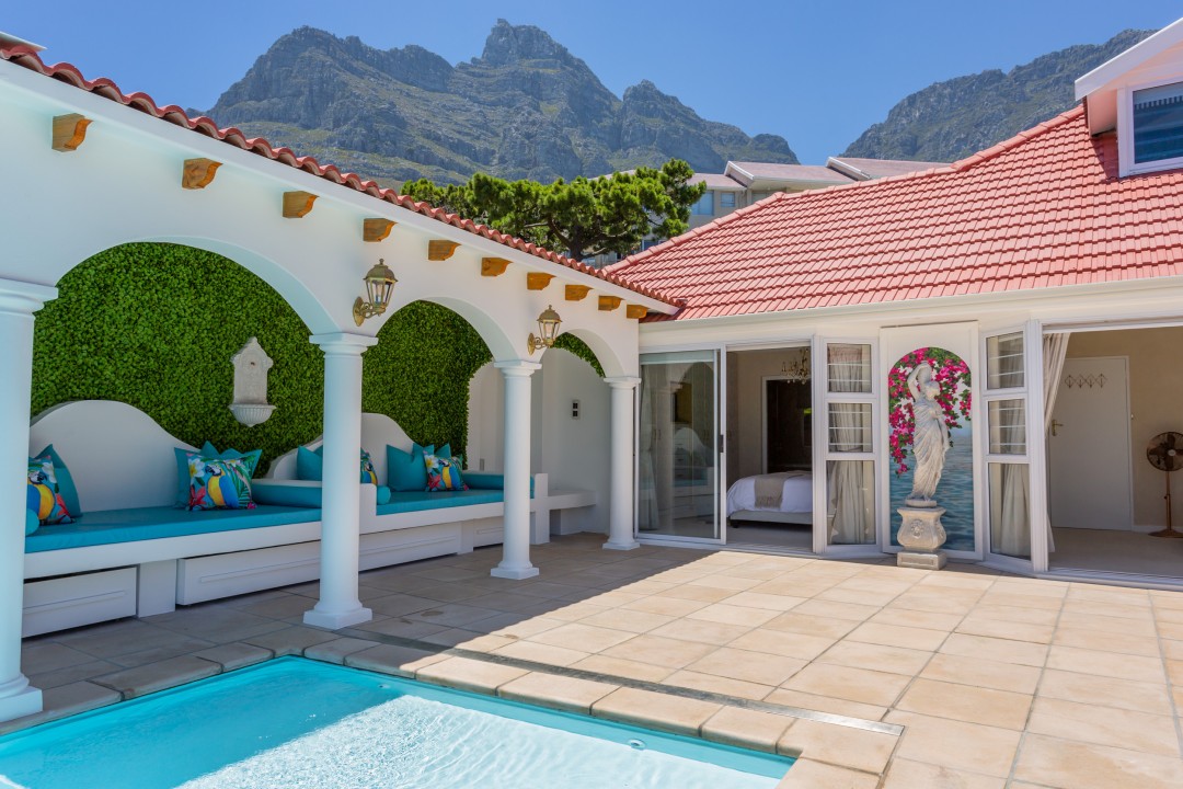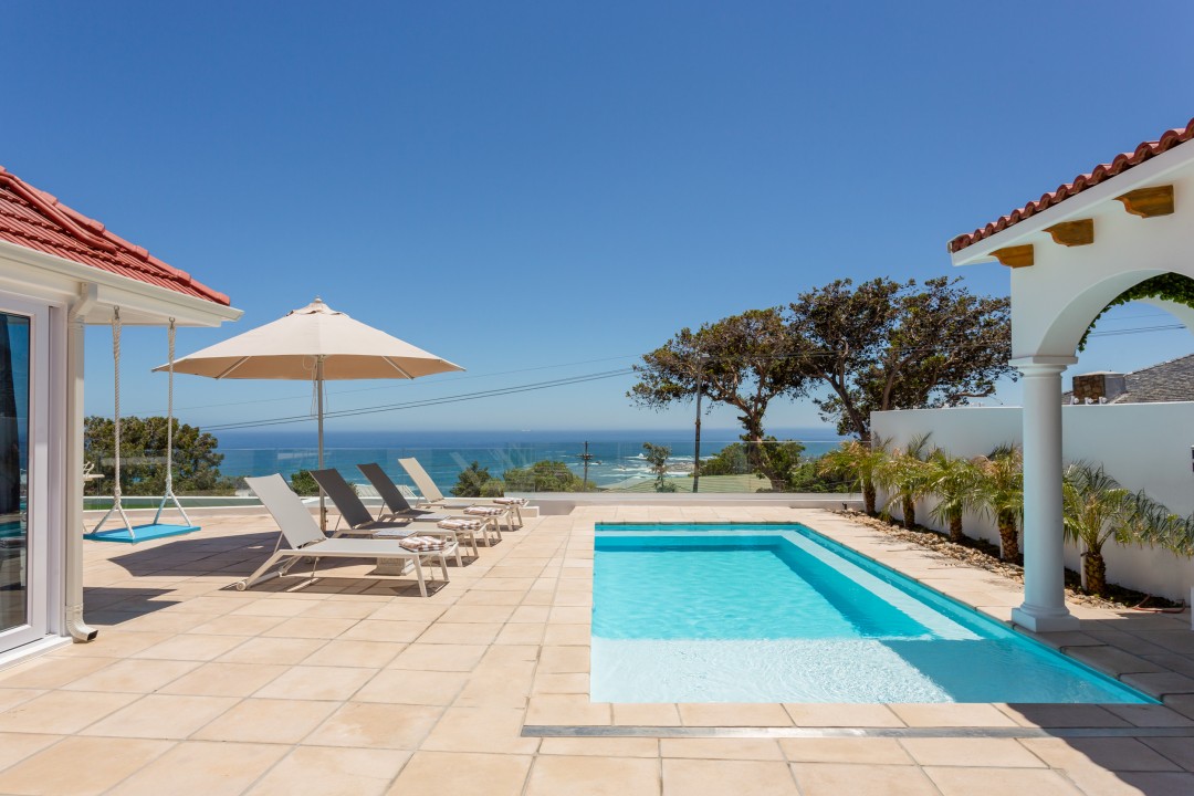 La Cabana is a gorgeous Mediterranean-inspired haven in a quiet road in Upper Camps Bay with breath-taking views of the Atlantic Ocean and Lion’s Head. This beautiful home is spread over two levels and has a magnificent sun deck with a swimming pool, sun loungers, built-in BBQ and an Italian-inspired cabana.