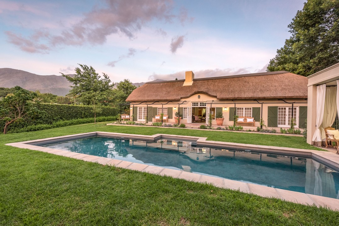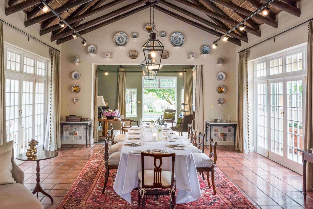 With design and finishes by Jacques Erasmus of Hemelhuijs, modern styling meets the classic charm of a traditional Cape Dutch home at the La Clé Lodge. Flowing interiors, high ceilings and ample living areas are enhanced by charming accents and the rustic beauty of traditional materials. Spend intimate time together at the Lodge in any of the five exquisitely comfortable en-suite bedrooms, or book it as a villa for a family and friends getaway.