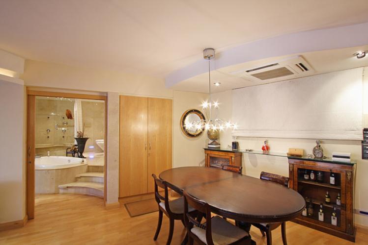 Relax in the fabulous open-plan lounge featuring sumptuous sofas, superior decorative details, and state-of-the-art audio visual equipment. The gleaming wooden flooring lends a warm and inviting ambiance to the beautiful apartment. The dining room is equally elegant and stylish and is the perfect gathering place to enjoy good times with loved ones and friends while enjoying meals prepared in the marvellous trendy kitchen fully equipped with top of the range appliances. The kitchen is an interesting mix of urban chic stainless steel wrapped in the warmth of rich wood finishing, truly exceptional.