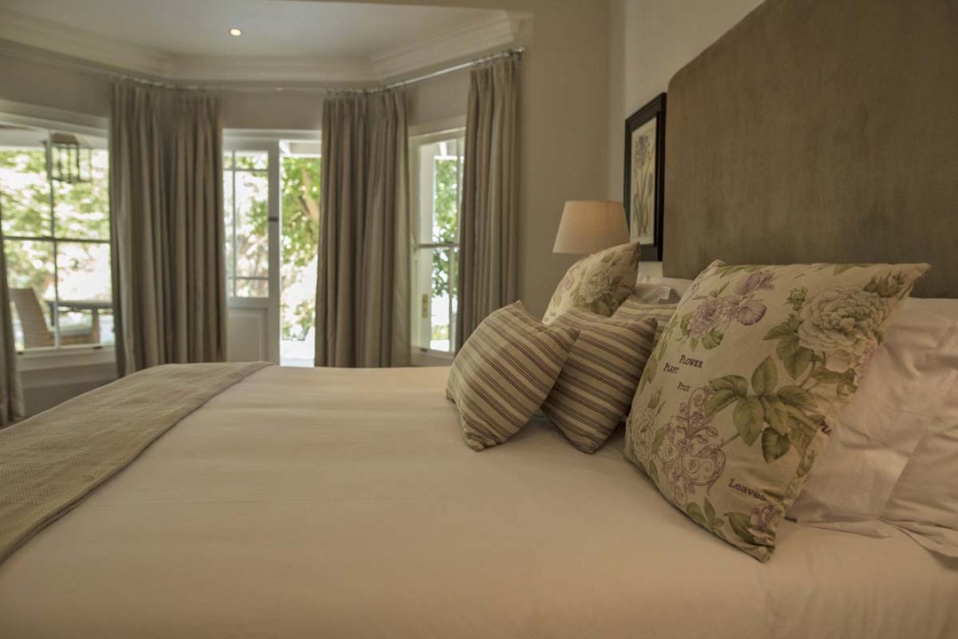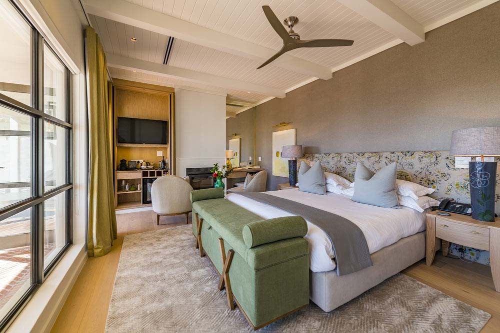 King size bed – extra length. En-suite bathroom (bath and walk-in shower) with heated towel rails and under floor heating. Air conditioning and underfloor heating in the bedroom. Tea and coffee making facilities and a complimentary stocked mini bar. Electronic safe. Smart Hospitality Television, enabling you to stream movies from your mobile device. Wood burning fireplace. Wireless internet connection. Private Patio overlooking the vineyard. 41m2 , inclusive of the bathroom, excluding outside veranda