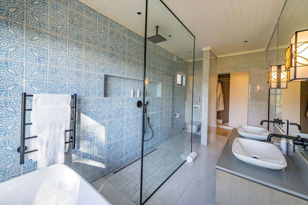 King size bed – extra length. En-suite bathroom (bath and walk-in shower) with heated towel rails and under floor heating. Air conditioning and underfloor heating in the bedroom. Tea and coffee making facilities and a complimentary stocked mini bar. Electronic safe. Smart Hospitality Television, enabling you to stream movies from your mobile device. Wireless internet connection. Shared family sized pool ( shared between four suites) Verandah overlooking the vineyards. 44m2 , inclusive of the bathroom