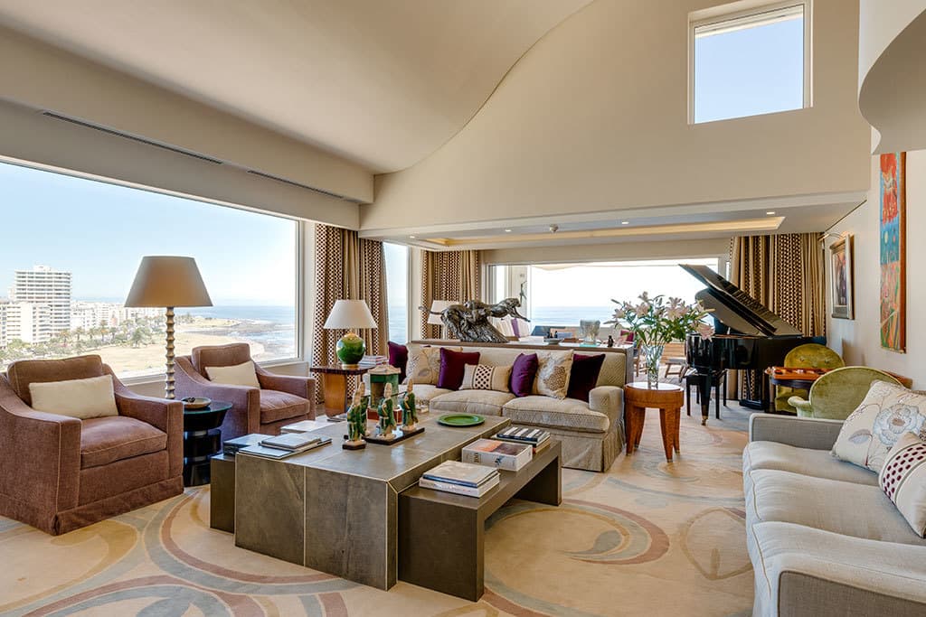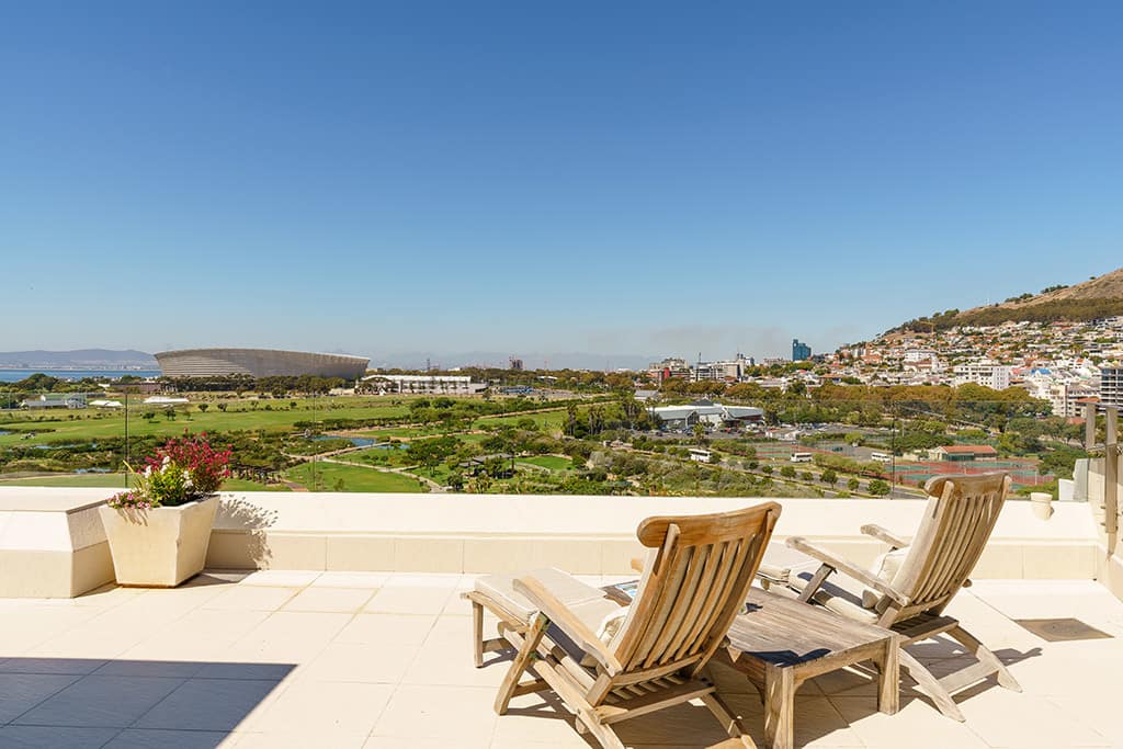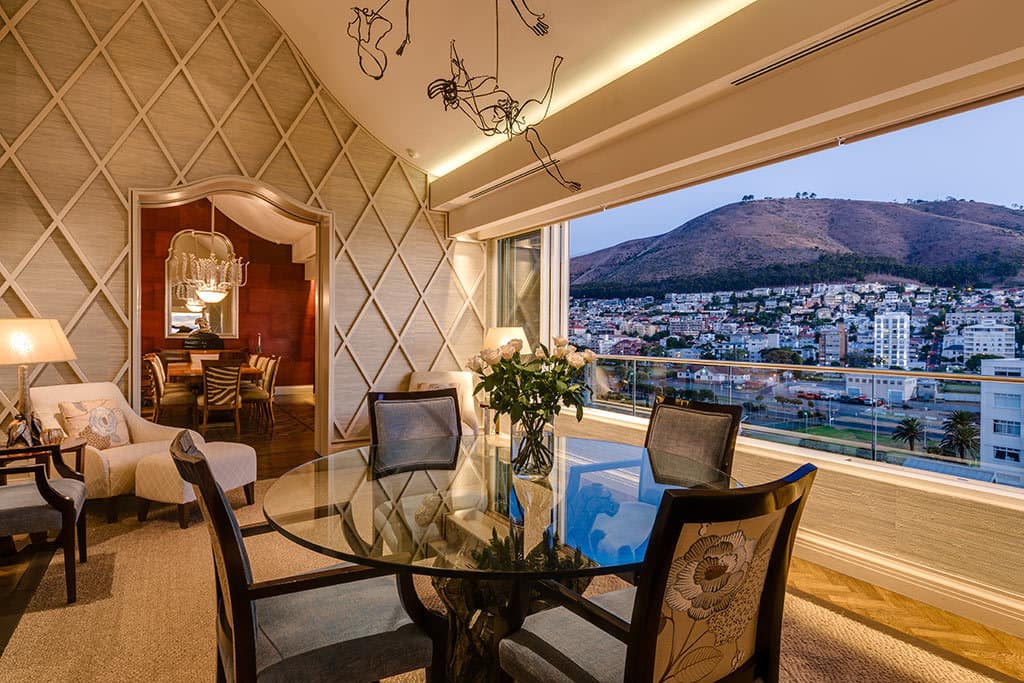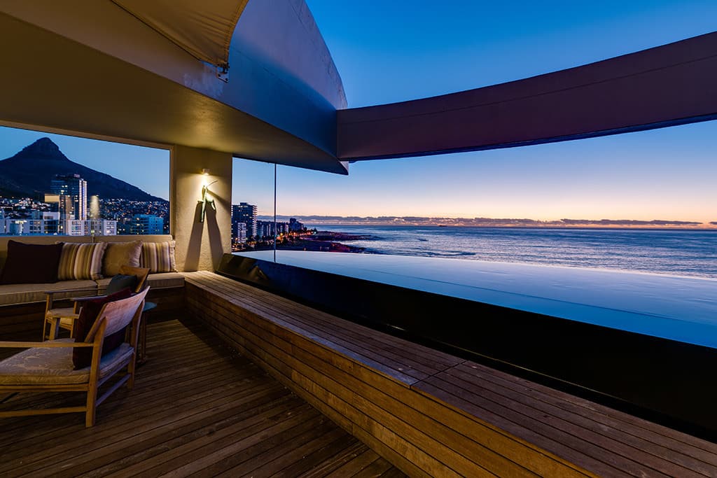 This incredibly luxurious “Home in the Sky” was recently redesigned by the owners to create an elegant, yet comfortable, homely environment, perfect for enjoying Cape Town’s famous summers. Guests can relax on the terraces and revive themselves in the majestic infinity pool, all the while experiencing spectacular views of Robben Island, the Atlantic Ocean and the greenery of the Metropolitan Golf Course and the Green Point Urban Park.