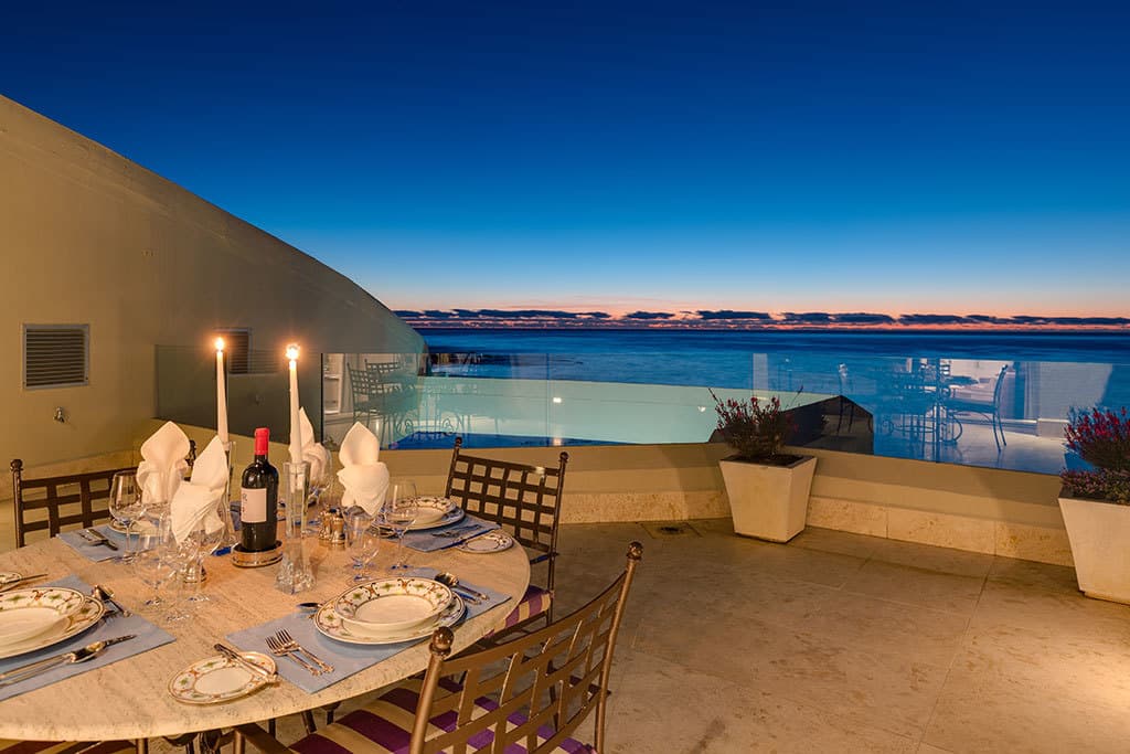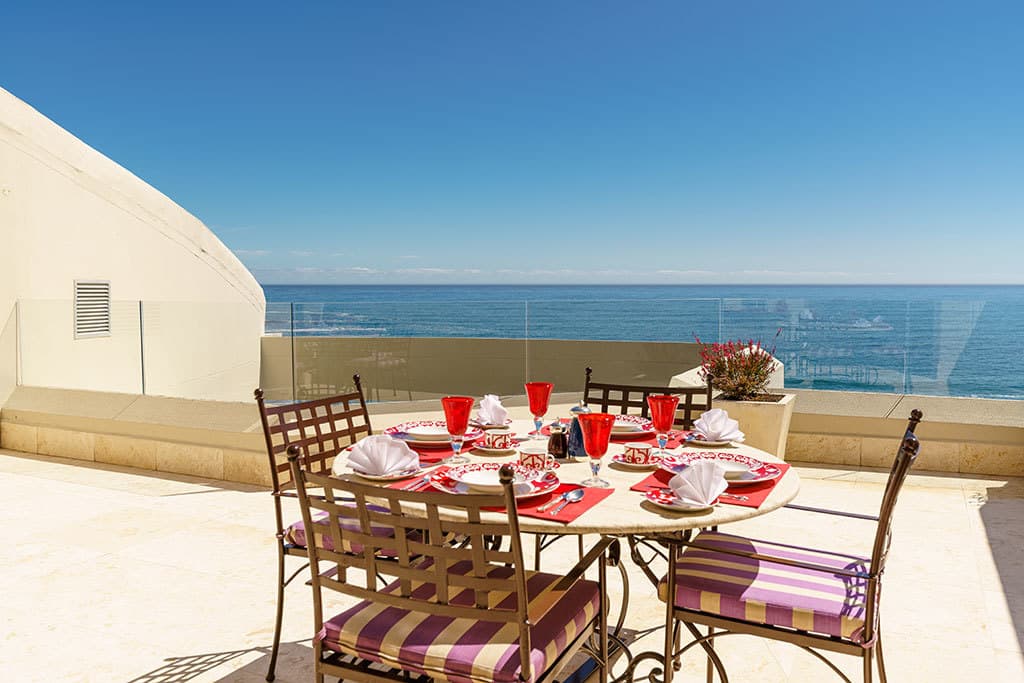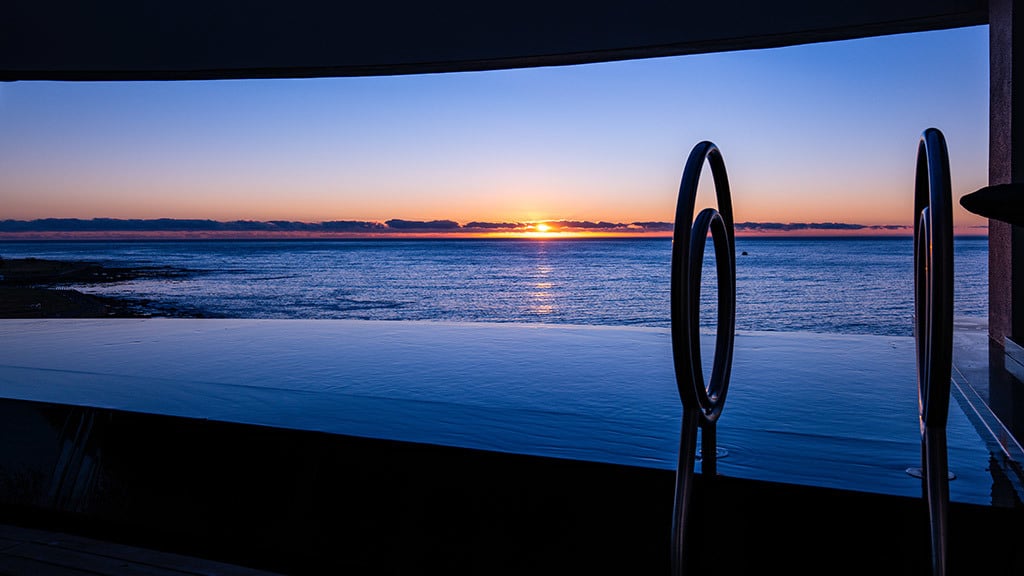 The sea-facing pool terrace is completely protected from Cape Town’s infamous South Easter that blows throughout summer and is entirely private.