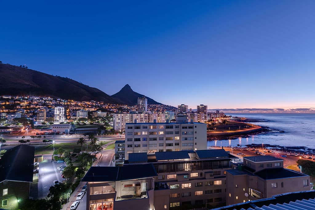 This south-facing apartment catches all the reflected light from the surrounding apartments. At night is when the magic truly comes alive. The energy of the bustling bodies running and walking along the famed promenade subsides and is dwarfed by the surreal silhouette of Lions Head overlooking the glistening night lights of Sea Point.