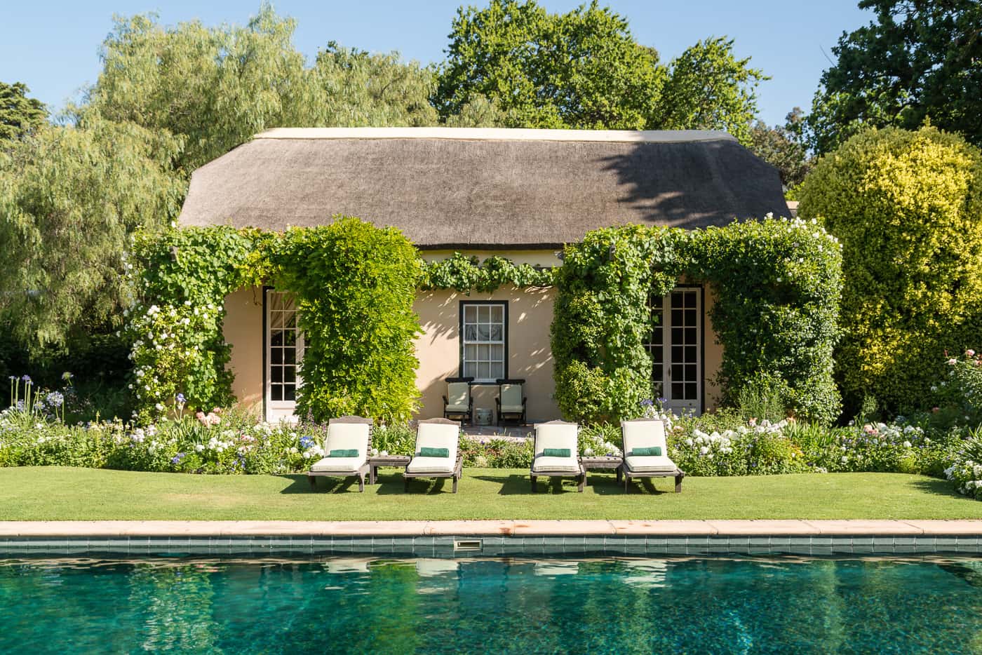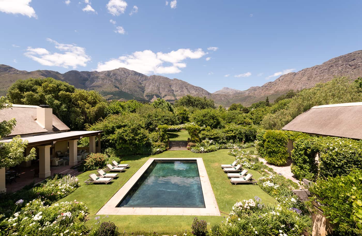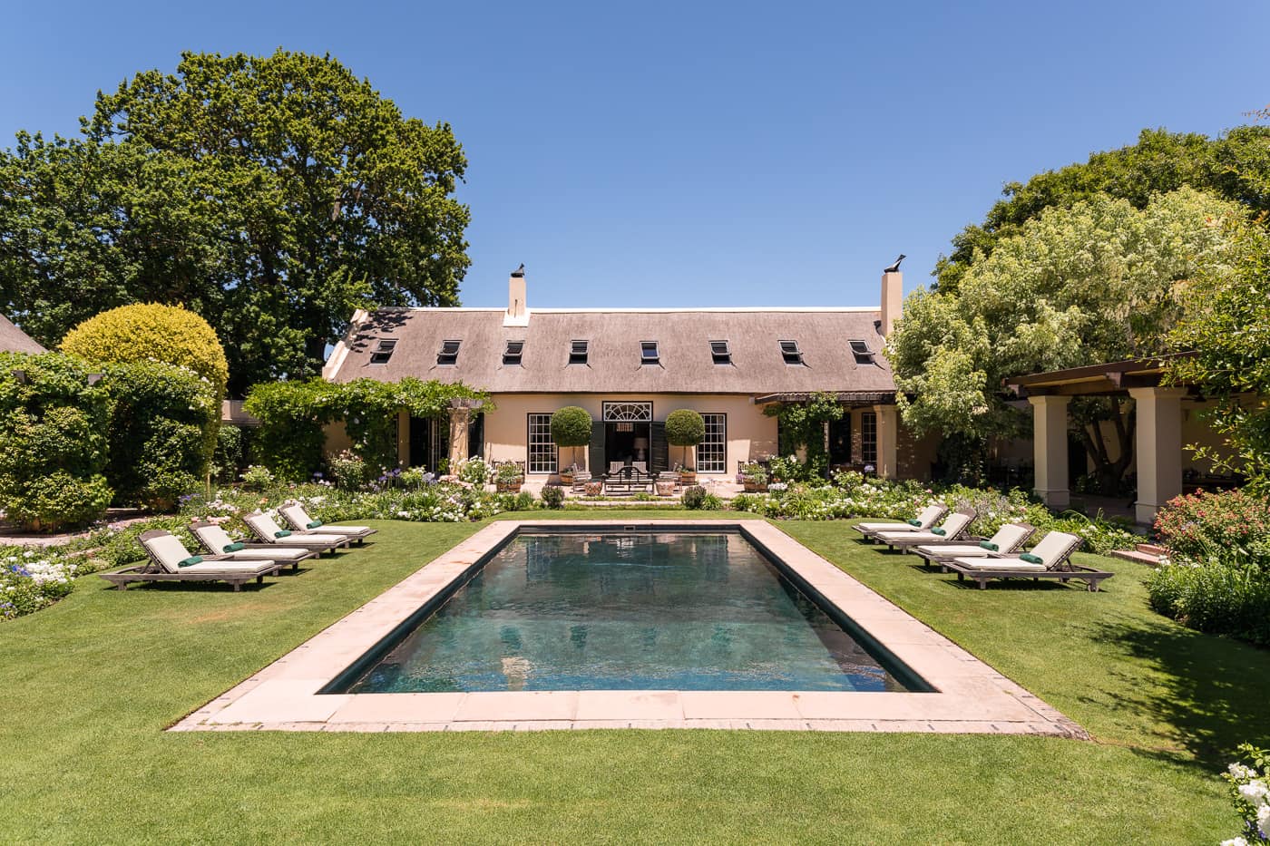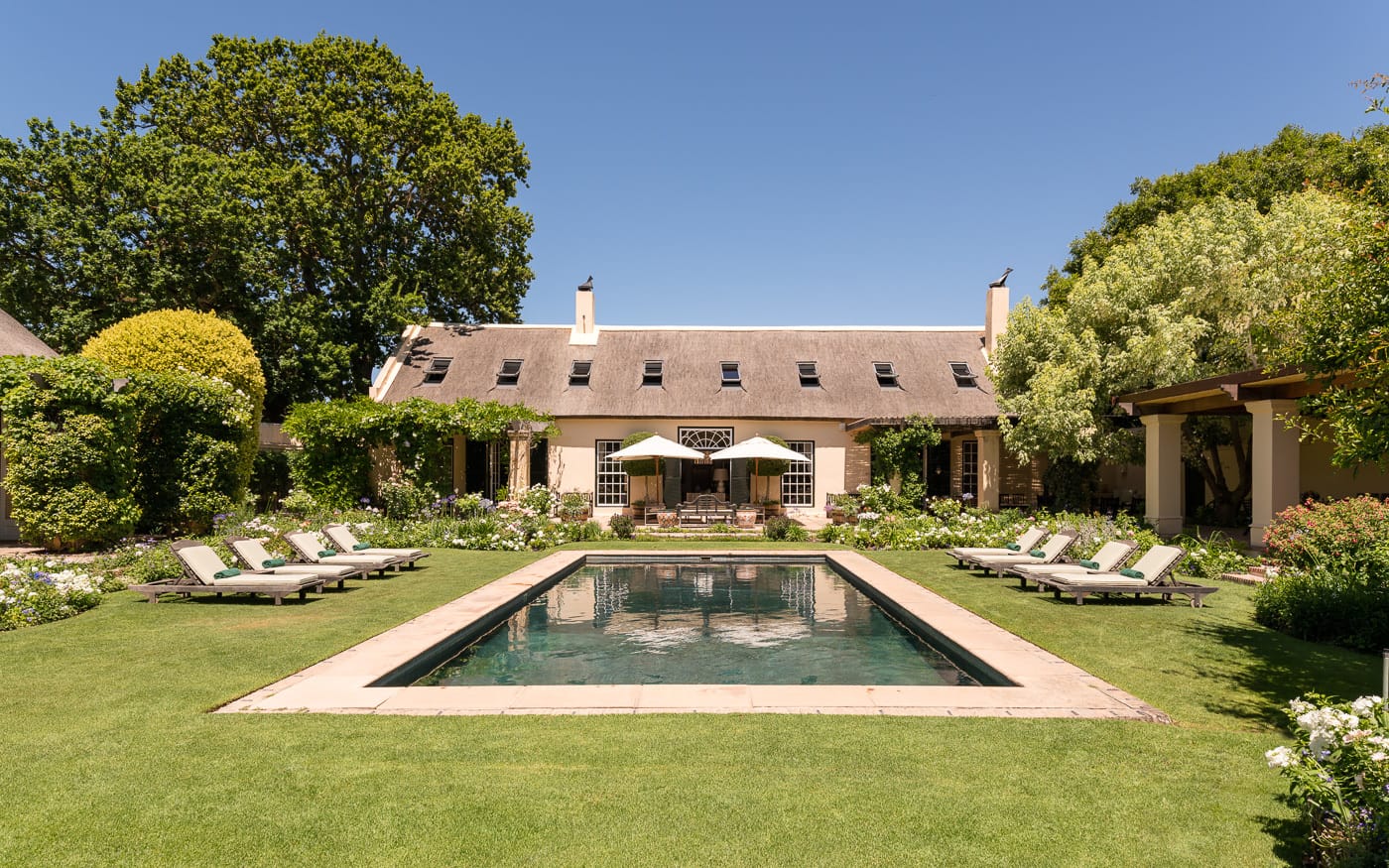 La Rive is a newly transformed, incredibly warm and homely villa that resembles a marriage of colonial English and traditional Afrikaans / Dutch heritage. The sounds of water from various features around the grounds will transport you to a tranquil hideaway just off Franschhoek’s Main Road. Considering it’s only a block off this road, you’ll be amazed that you can’t see any forms of human habitation from all parts of the garden, swimming pool and outside verandahs.