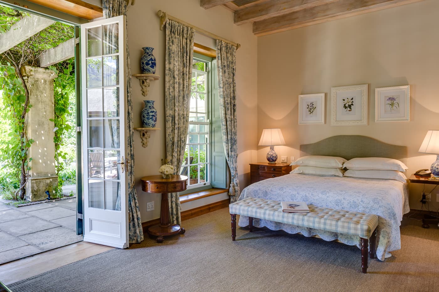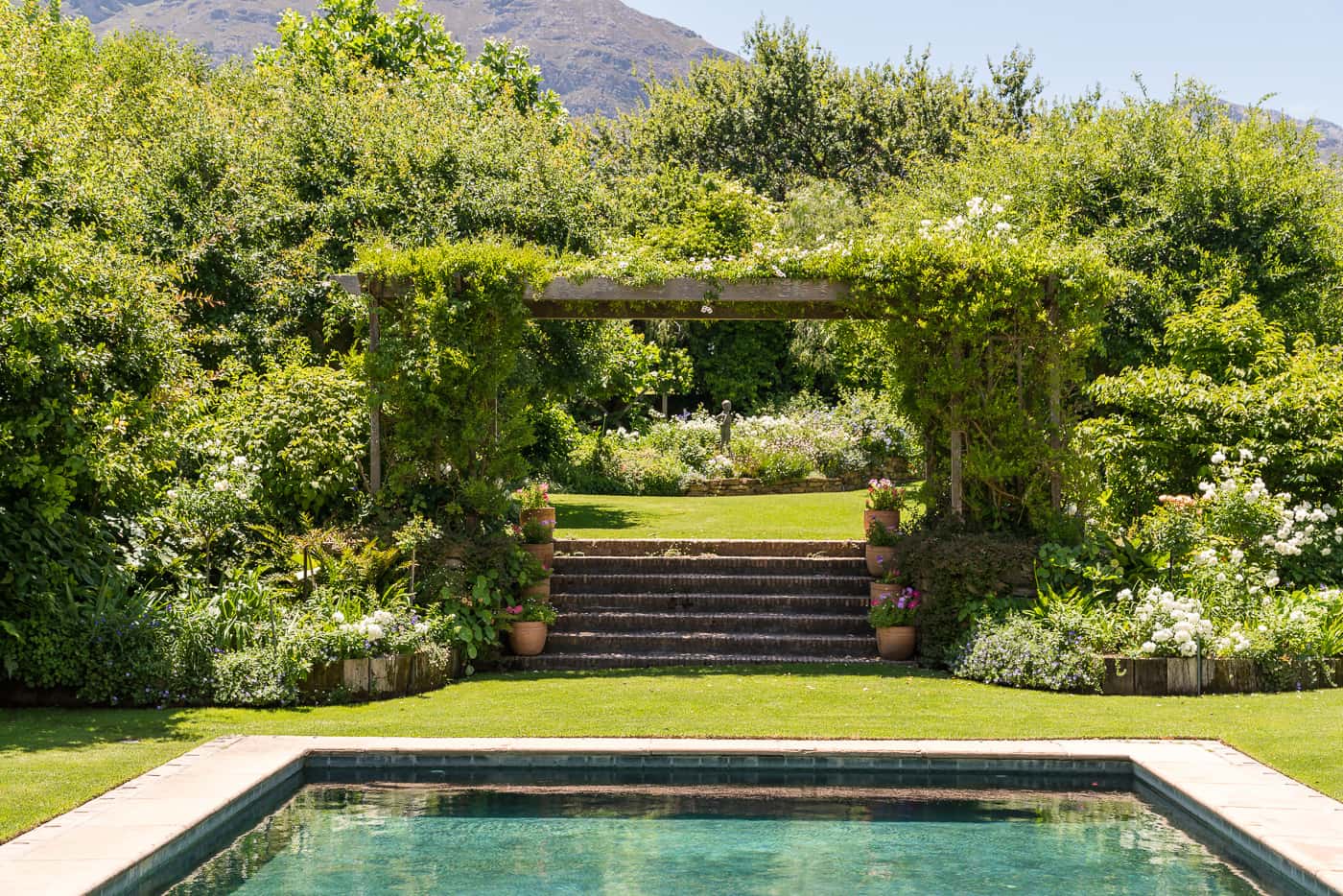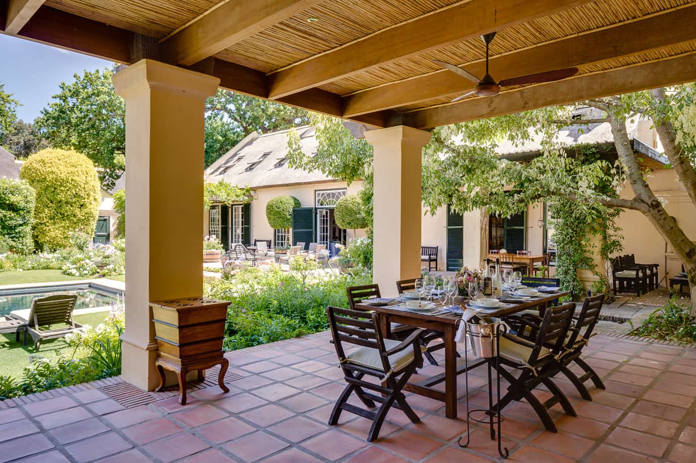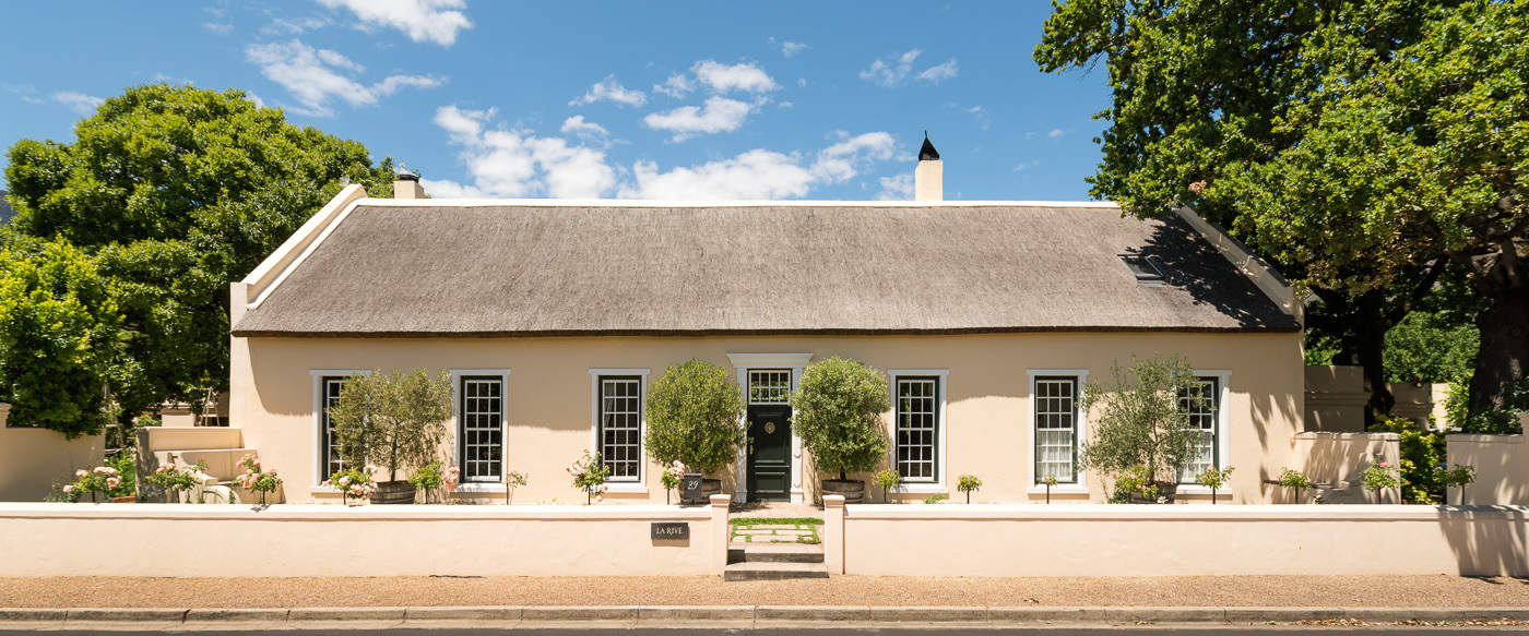 La Rive is a newly transformed, incredibly warm and homely villa that resembles a marriage of colonial English and traditional Afrikaans / Dutch heritage. The sounds of water from various features around the grounds will transport you to a tranquil hideaway just off Franschhoek’s Main Road. Considering it’s only a block off this road, you’ll be amazed that you can’t see any forms of human habitation from all parts of the garden, swimming pool and outside verandahs.