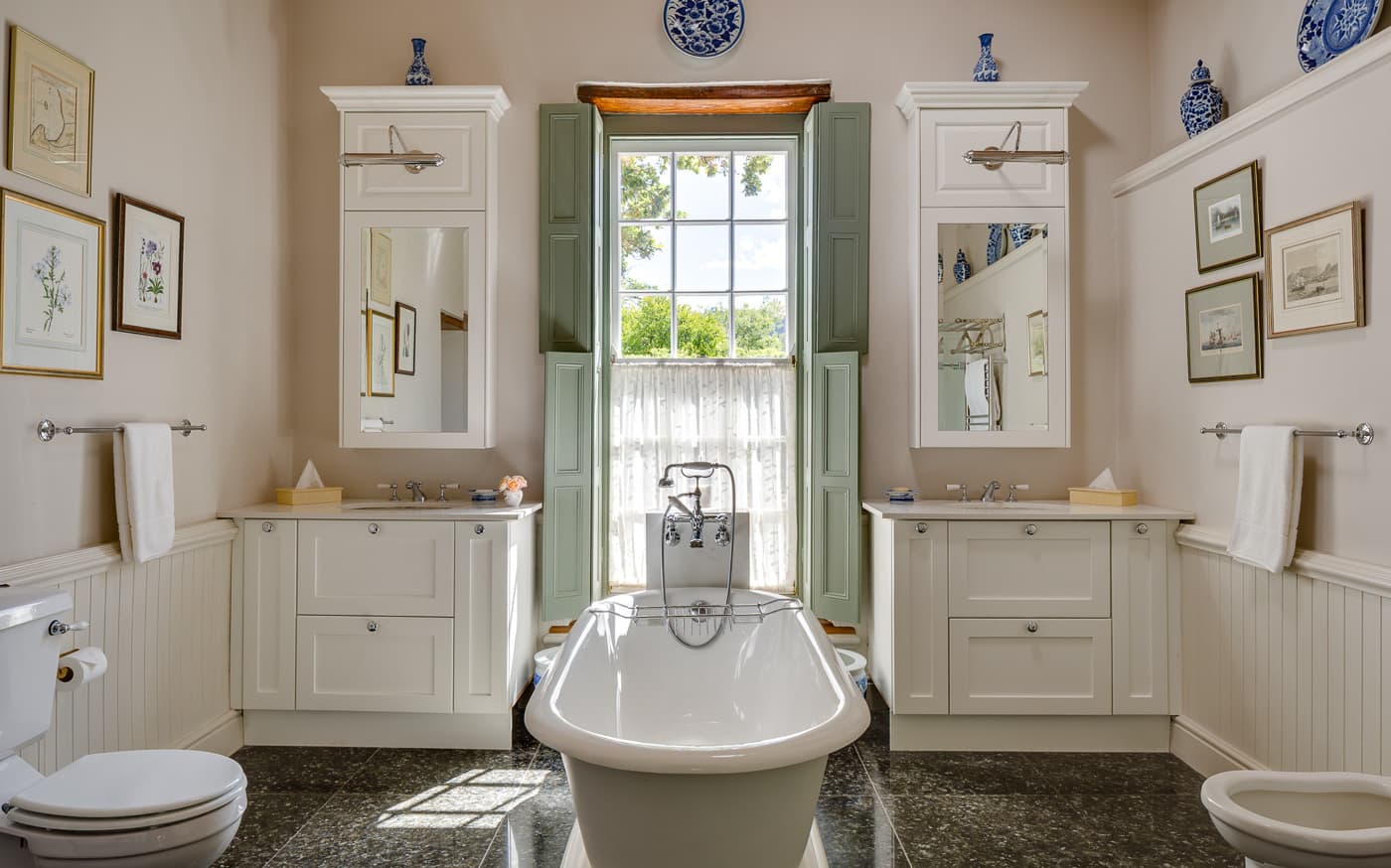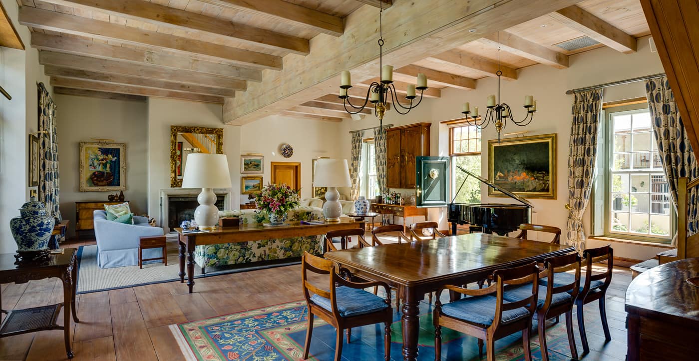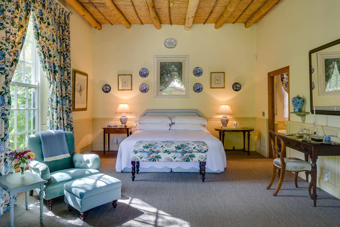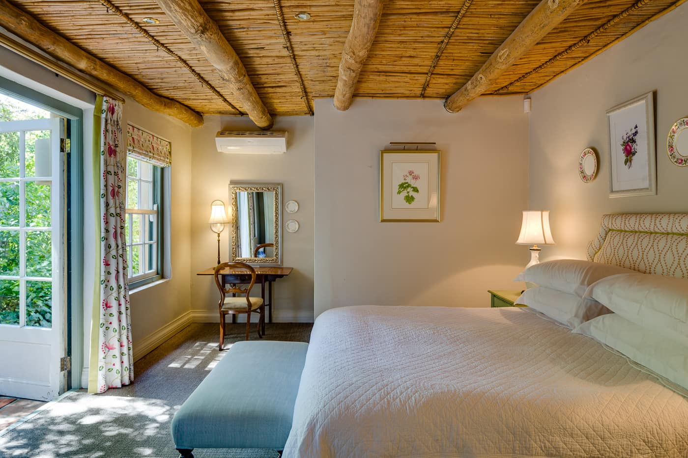 La Rive is a newly transformed, incredibly warm and homely villa that resembles a marriage of colonial English and traditional Afrikaans / Dutch heritage. The sounds of water from various features around the grounds will transport you to a tranquil hideaway just off Franschhoek’s Main Road. Considering it’s only a block off this road, you’ll be amazed that you can’t see any forms of human habitation from all parts of the garden, swimming pool and outside verandahs.