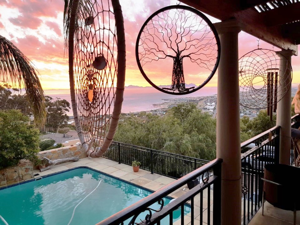 This Provence style villa is set on the side of the mountain overlooking Gordon’s Bay Village and False Bay and the views are unforgettable.The mountain behind is a nature reserve – secluded, private, natural, peaceful and unspoilt. Gordons Bay is a beautiful village with 2 harbours, lovely restaurants & bars, blue flag beaches (3minutes) and only 15 minutes away to some of the oldest & most famous wine estates in the Western Cape.