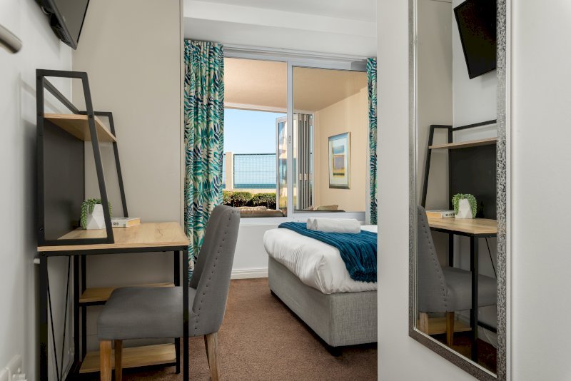 Enjoy breathtaking ocean views from the comfort of a plush queen bed, generous cabinet space for longer stays, a dedicated work desk ideal for business or leisure, a Smart TV for catching up on your favourite shows, and a private ensuite bathroom complete with a bathtub for unwinding after a day of exploring.