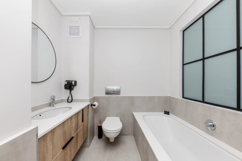 The interiors are modern and thoughtfully curated, blending comfort with clean design. An open-plan layout allows for effortless living, whether enjoying a quiet morning coffee at the kitchen island or an evening meal at the dining table. The atmosphere is relaxed yet refined — a private escape within easy reach of the vibrancy of the city.