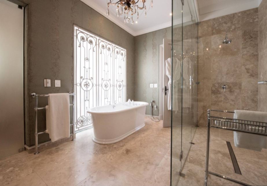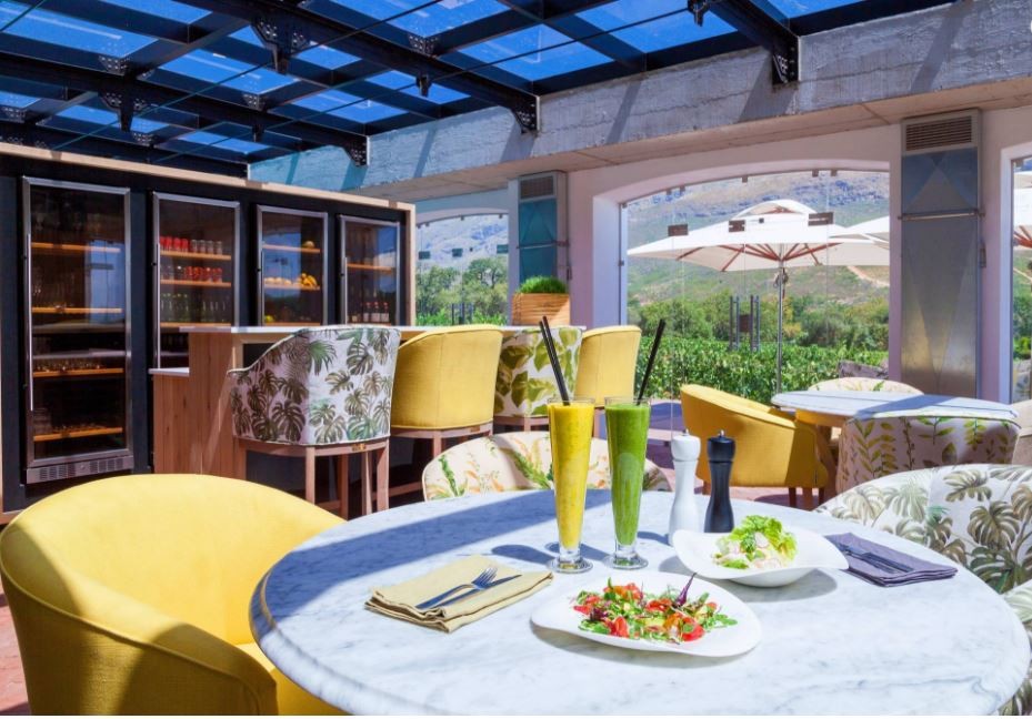 The treatment rooms and facilities have been transformed to offer a Winelands retreat experience with a distinctly luxurious feel. Large-scale windows allow natural light to spill in, while bringing the spectacular views to the forefront of the spacious, welcoming and airy building. The interiors bring a natural yet contemporary feel to the space, with layered textures and colours prevailing. Beautiful variations of Travertine stone are used throughout the facilities, while the walls offer a visual treat with alternating claddings such as timber, fabric and wallpaper coming together to create an eclectic mix of elements.