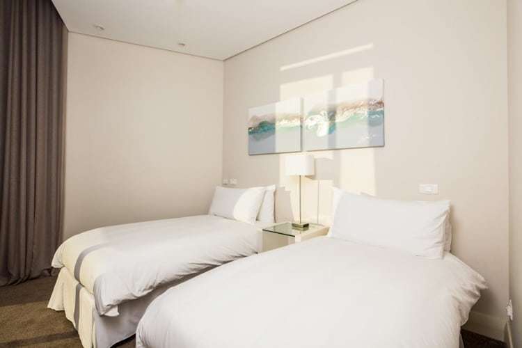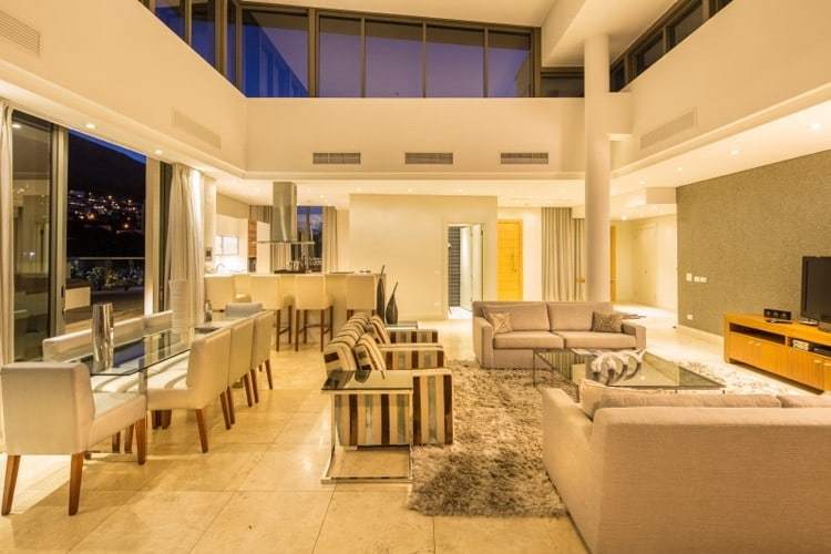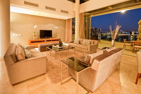 This particular unit is a double volume penthouse that stretches over the fifth and sixth floors. It boasts 3 gorgeous bedrooms that are able to sleep a total of 6 guests. The main bedroom features a king sized bed and each guest bedroom hosts queen sized beds. Comfort and luxury is the order of the day when staying at this penthouse apartment. The open plan lounge and dining room provide an inviting entertainment zone while there is a second lounge for relaxing and taking some time out. A private elevator transports guests directly into the apartment!