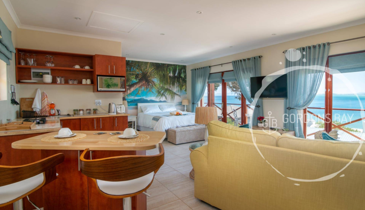 Each apartment is north facing, giving you sun from dusk till dawn while overlooking the bay. The famous Bikini beach is a leisurely walk away from your doorstep, while a stopover in the harbor or a visit to local restaurants can be found en-route. Heading towards the village center, you can visit one of the oldest bookshops in the Helderberg area to find a good read during your stay or just take a relaxing walk along the beach.