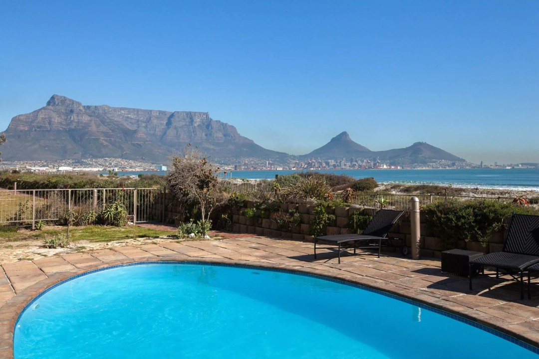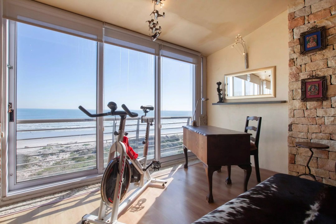 The living room has 2 x 2 seater comfortable brown leather couches for your own convenience while watching TV or just sitting and watching the perfect sunset. From the comfort of the open space area, you can make use of the exercise bicycle while watching over the beach or Table Mountain.