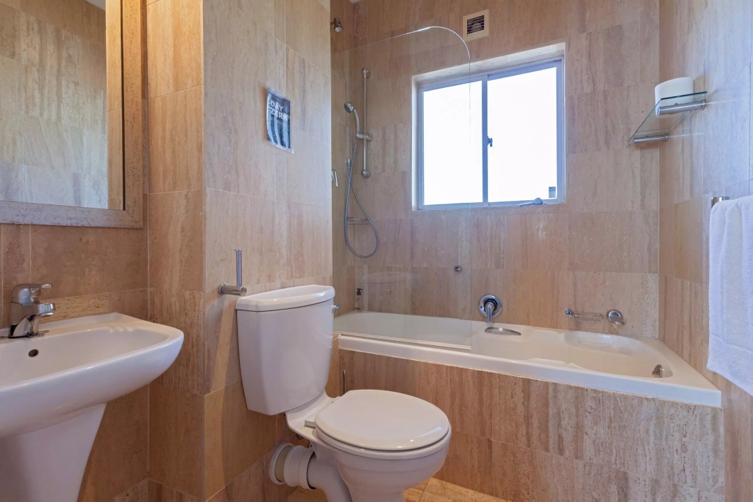 As you make your way down to the next bedroom there you will find also a queen bed with built-in cupboards don’t forget the African portrait. The other bathroom consists of a shower or bath, basin & toilet, and doesn’t forget the heated towel rail for those cold winter nights.