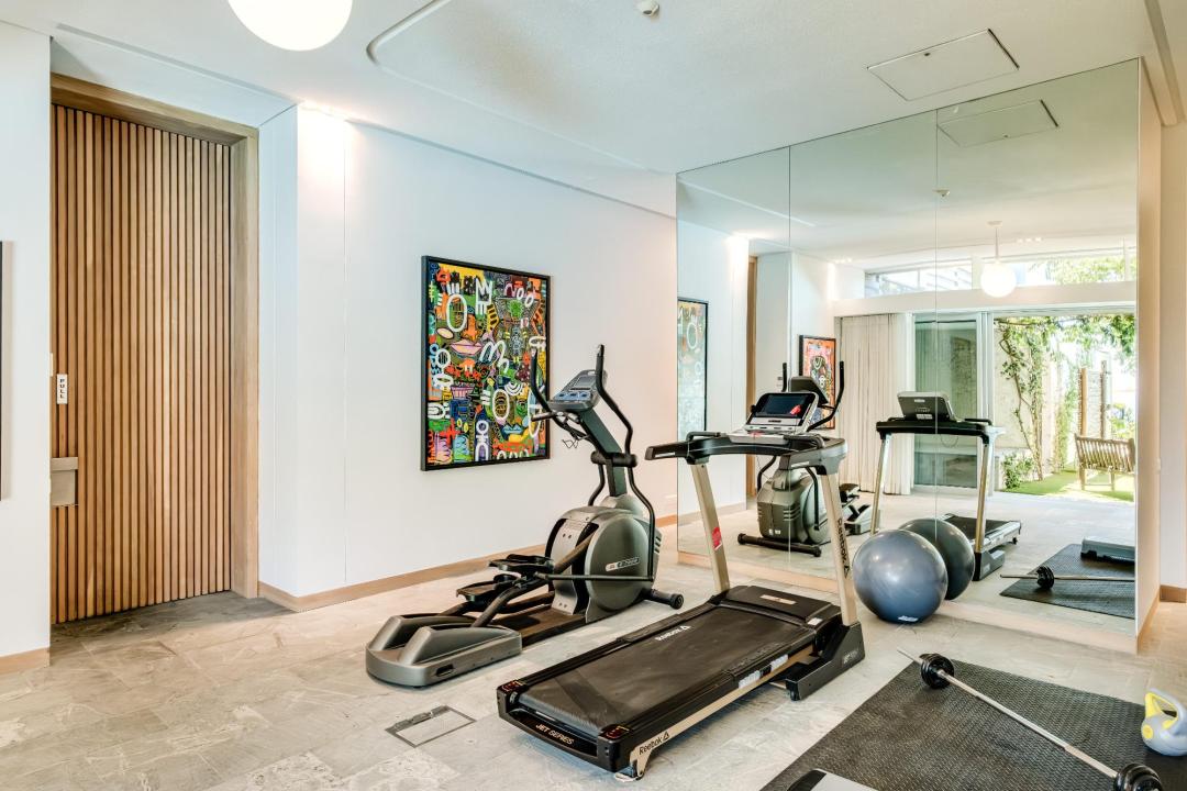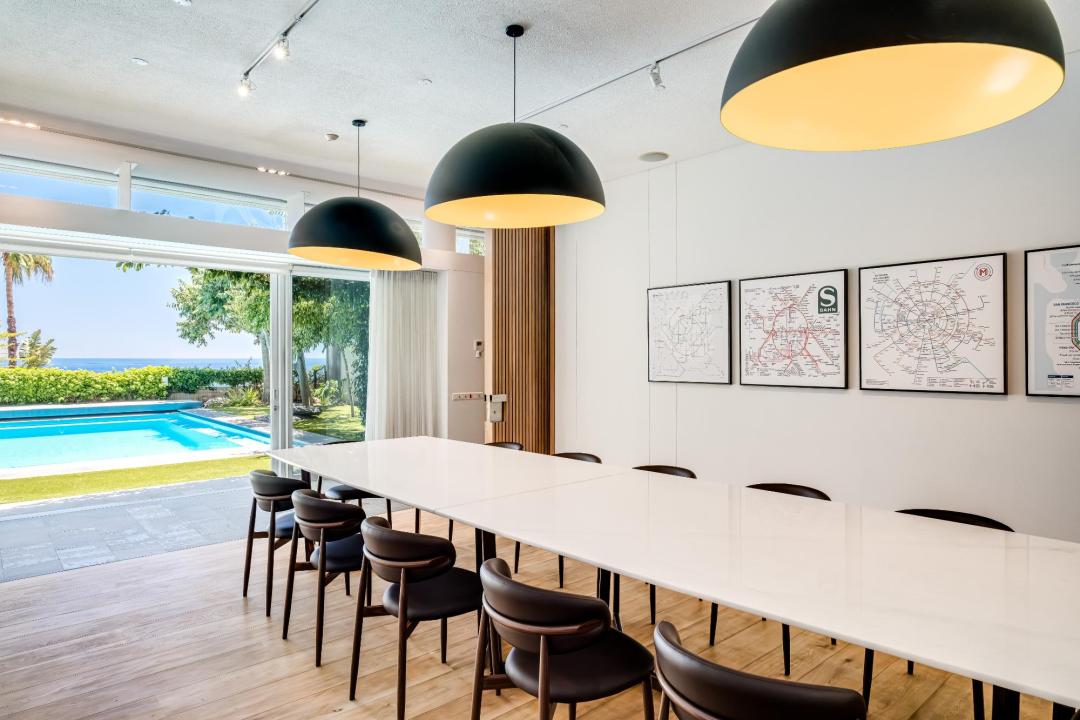 A large “chill room” with biofuel fireplace, a private cinema with seating for ten, a boardroom for twelve, several study spaces, and a fully equipped gym elevate the villa into a world of luxurious convenience.