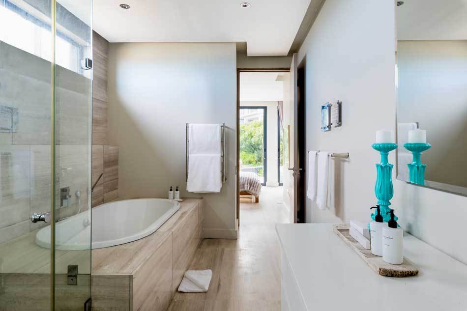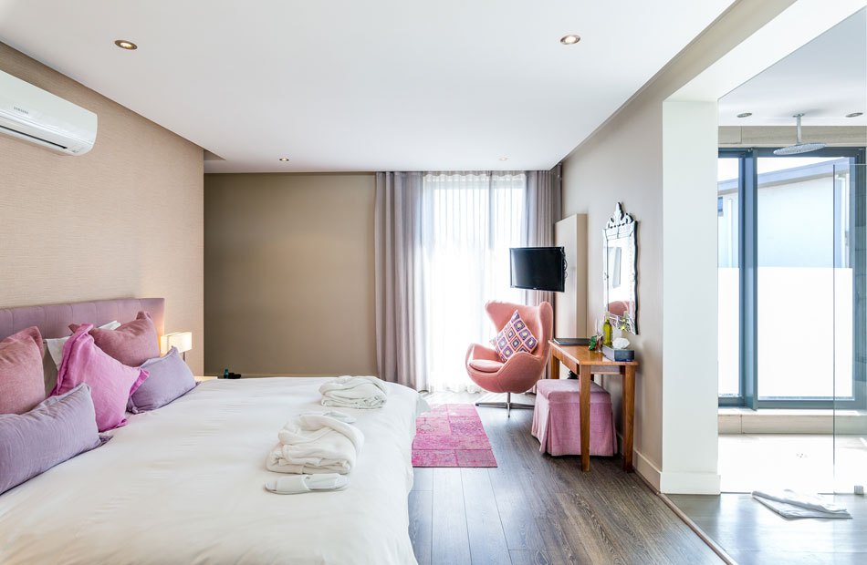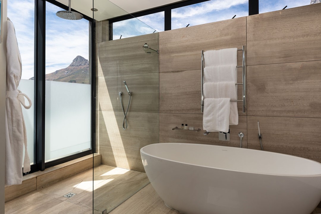 Our Atlantic Suite boasts some of the best views one can get at a guest house in Cape Town. It has 180-degree ocean and mountain views from the bed itself and the balcony leads to a private hot tub. Atlantic truly is sophisticated living at its best.