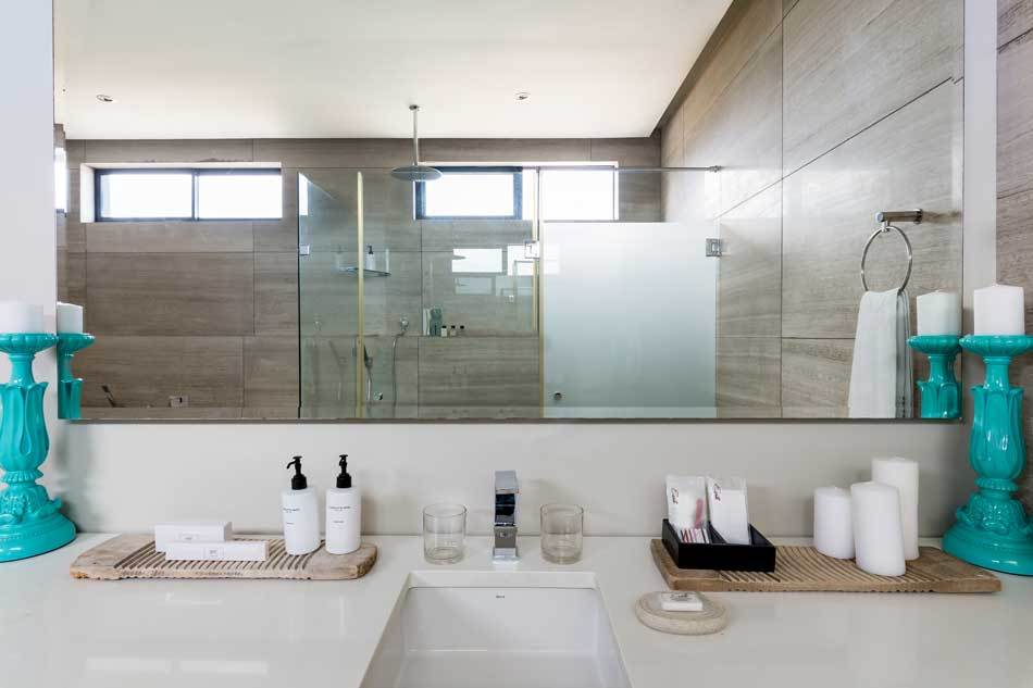 Besides offering a scenic and direct view of the river running by, as well as the garden with palm trees, River Palm also offers a 180-degree view of the ocean from the bath and shower, so you get to experience it all in this lovely room!