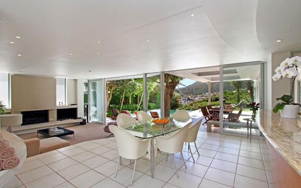 Lions View Main House on the ground floor comprises five double en-suite bedrooms, a spacious lounge, a dining room and a fully equipped open-plan kitchen. The entrance is via a footbridge that traverses the Japanese koi pond. Furniture and fixtures by top designers such as Philippe Starck line the house adding a fine touch of elegance. The master bedroom, with its raised spa bath behind the bed has wall-to-wall view of the pool and beach beyond. Surrounded by the large patio and beautifully manicured garden is a seductive infinity-edged swimming pool that overlooks Lions Head.