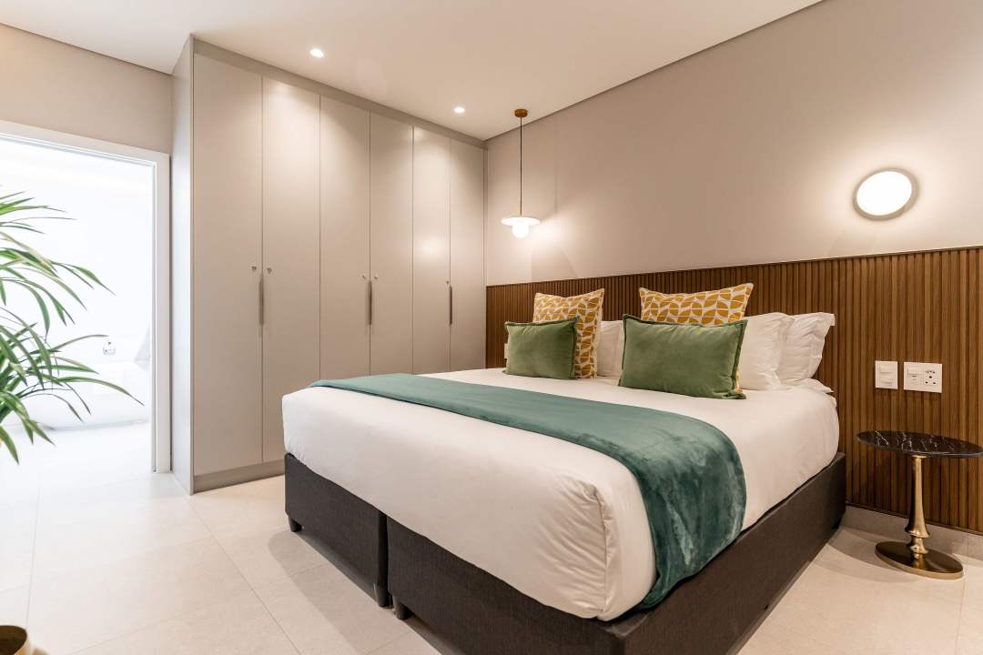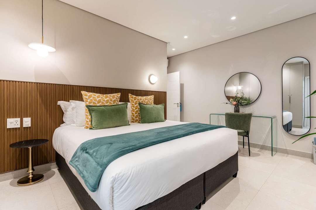 The apartment boasts four well-appointed bedrooms, designed to provide maximum comfort and privacy. All bedrooms offer en-suite bathrooms. The master bedroom is a true sanctuary, offering breathtaking ocean views, a mounted TV, and an en-suite bathroom with both a bath and shower, providing a perfect retreat after a day of exploring Cape Town.