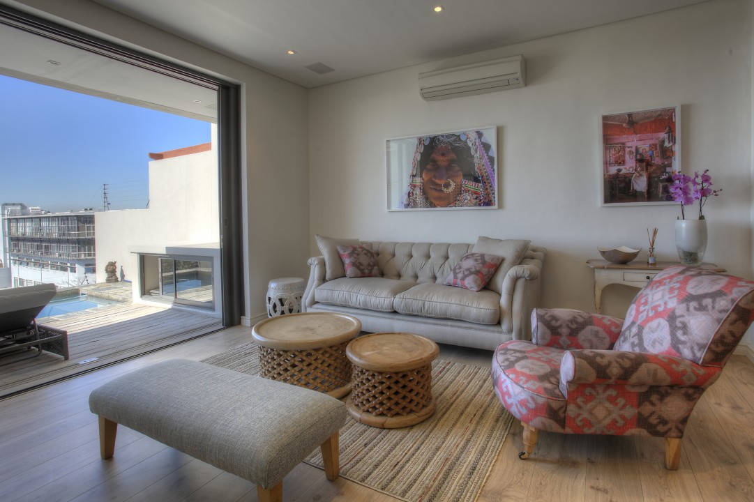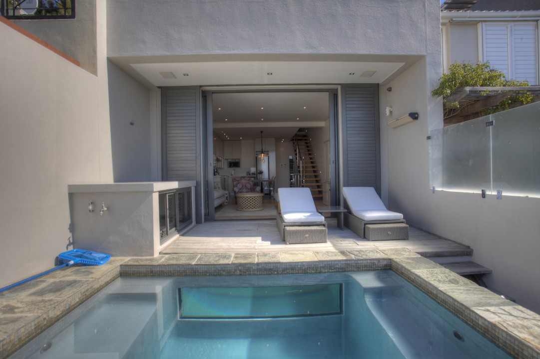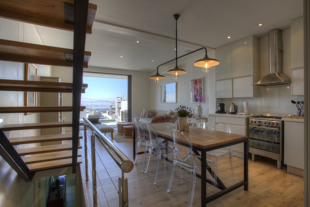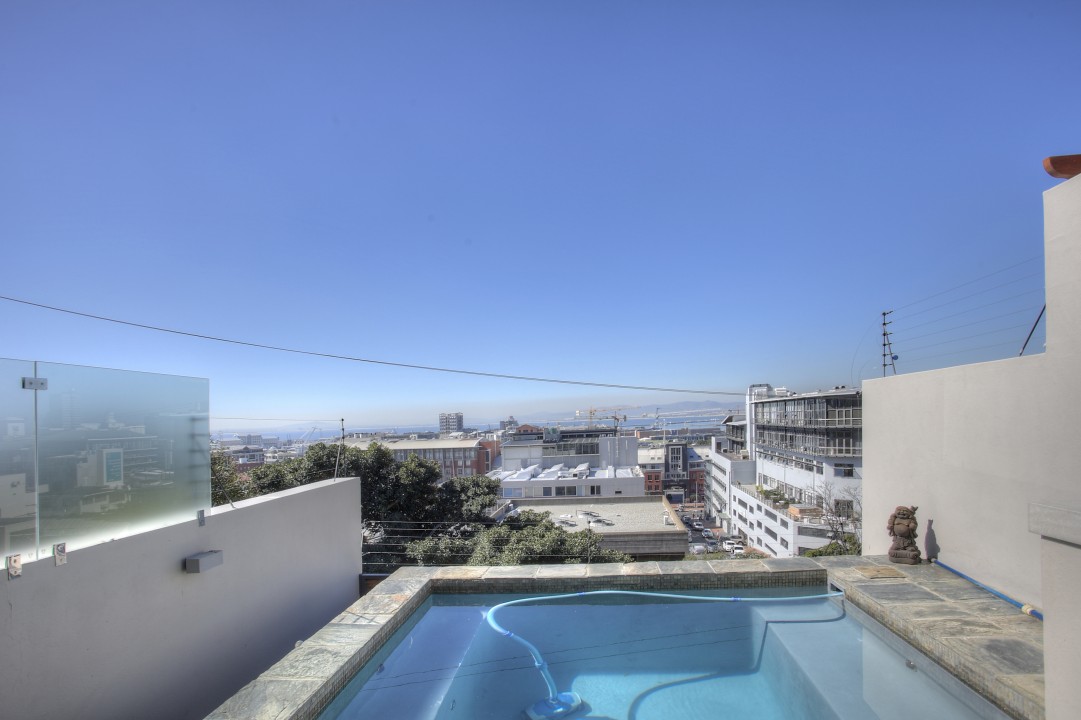 The property is located within easy walking distance to the City Centre, V&A Waterfront and the vibrant clubs, bars and restaurants in the area.. Modern finishes and fittings compliment the spatial quality of the interiors, with great views of Cape Town city and Table Mountain. The living and kitchen area which is on the road level is open plan leading onto a lap pool with exquisite views of the ocean and city.