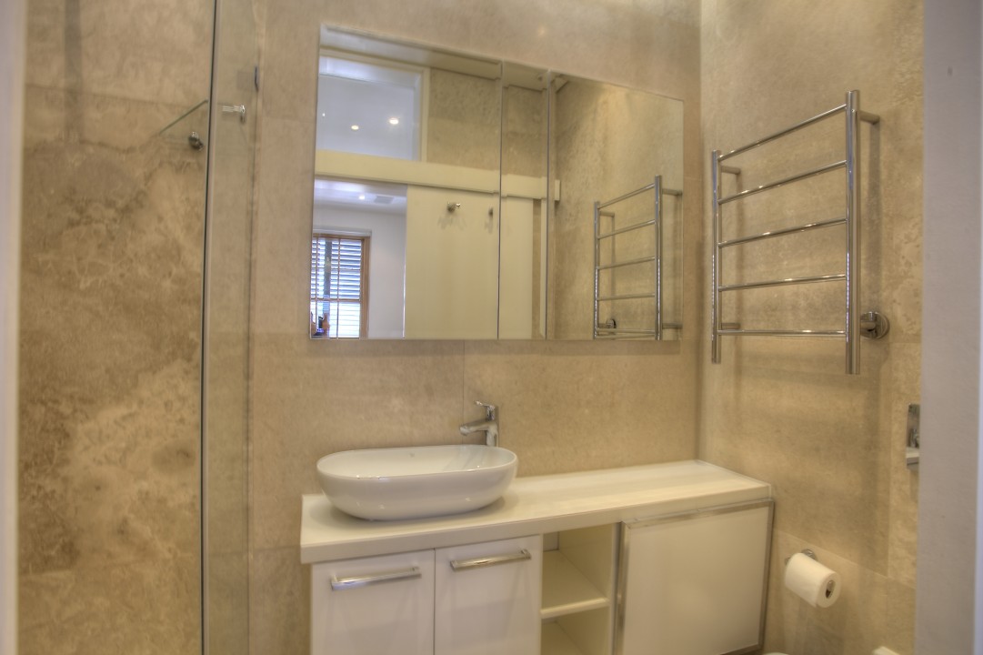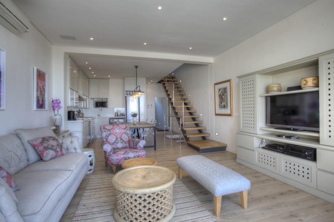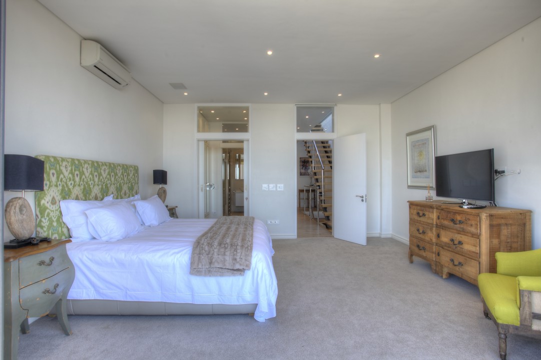The views from the roof top terrace offer a 360-degree perspective of Cape Town and therefore a great spot to have a sun downer and enjoy the sunset over the Atlantic Ocean. In the basement level of the home is a large bedroom with lounge / tv area and a fold out queen size bed with en-suite bathroom.