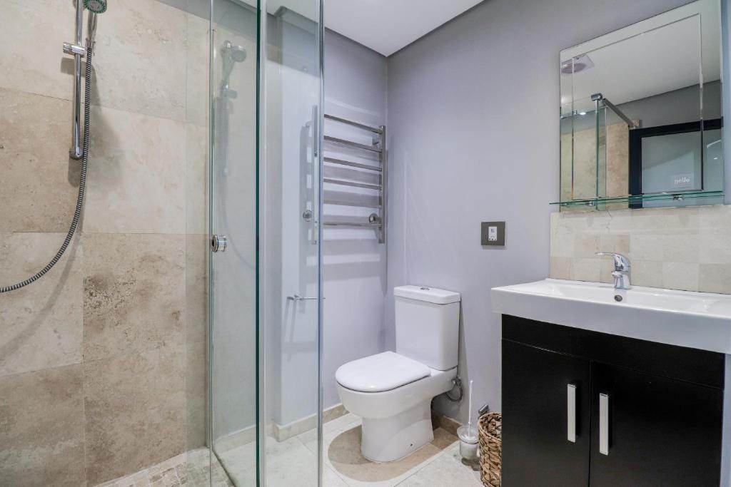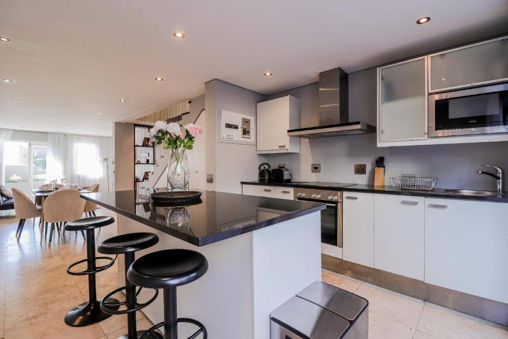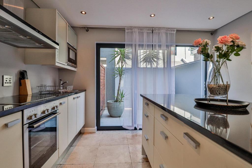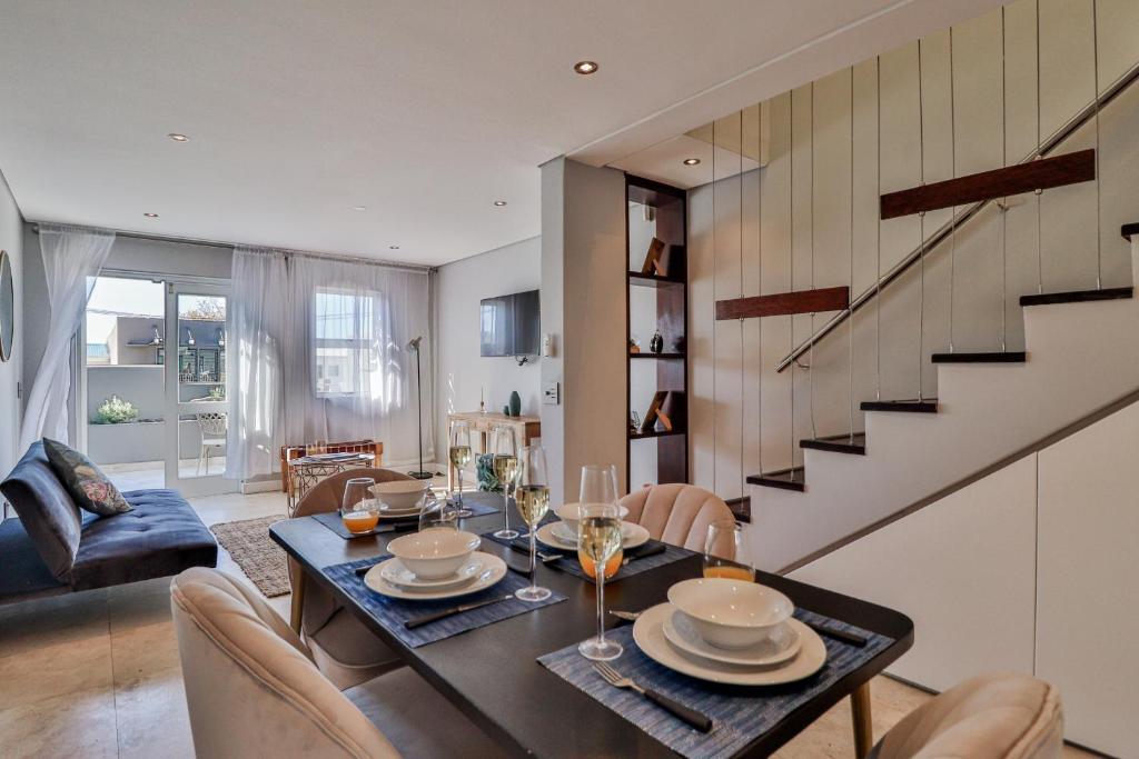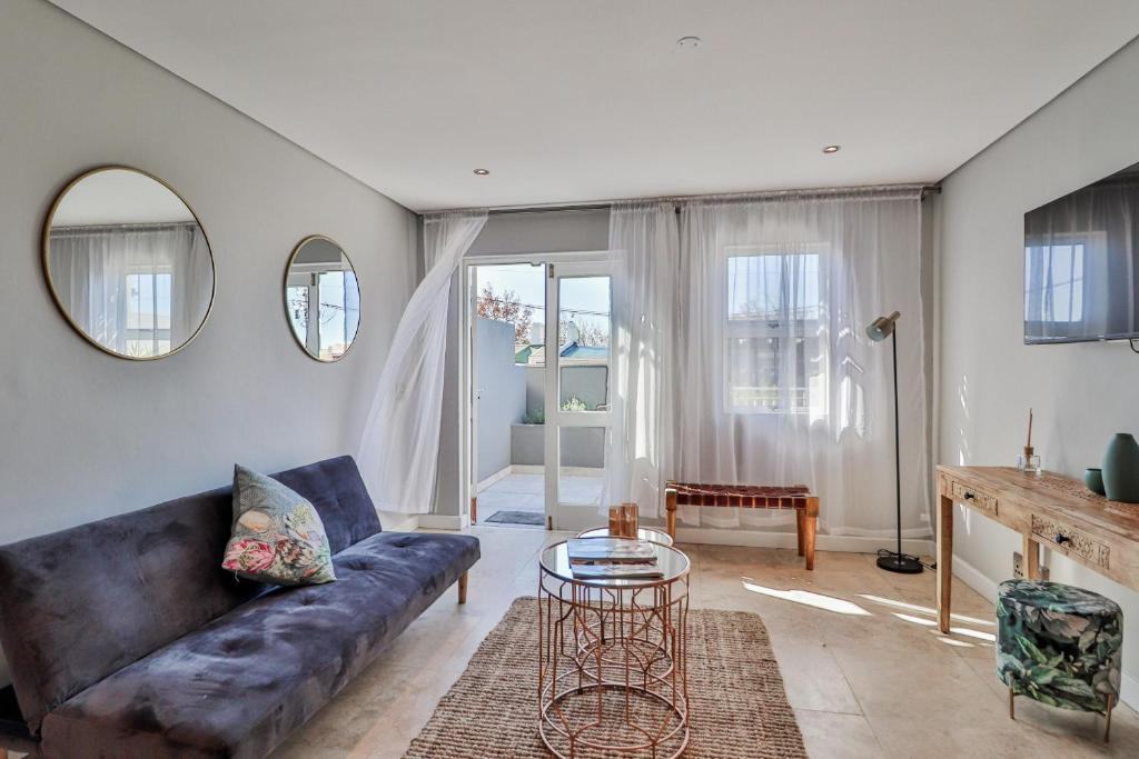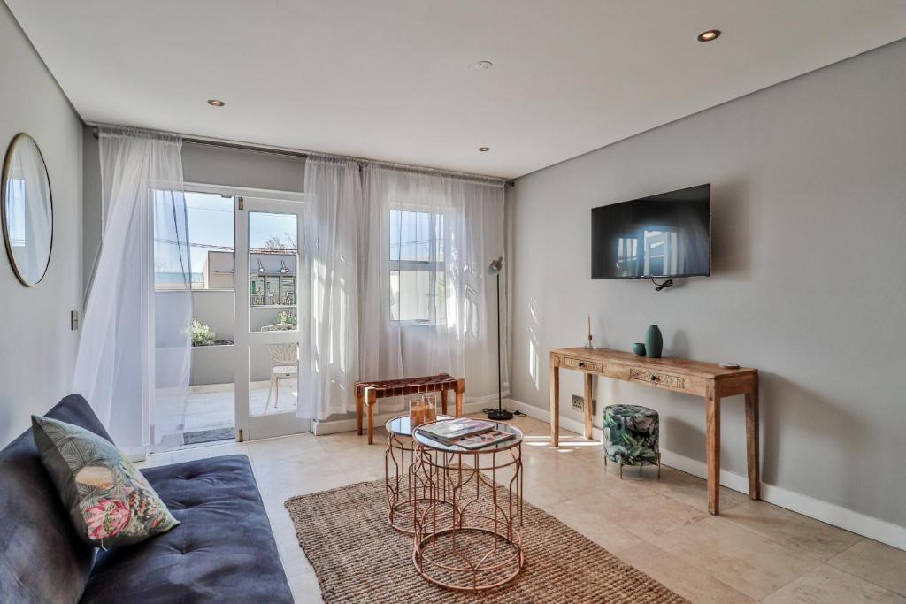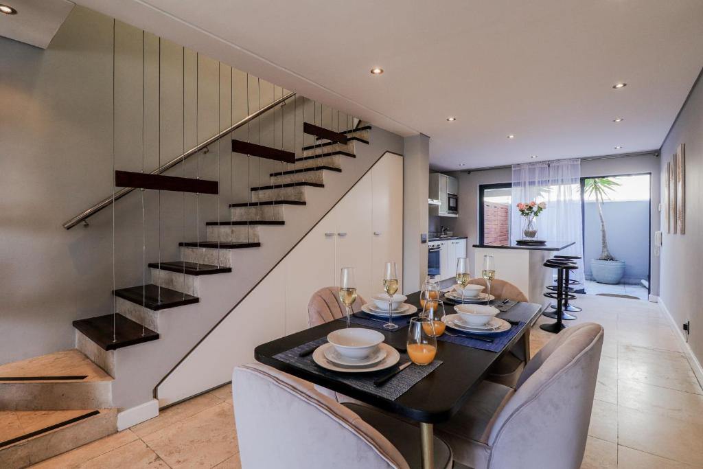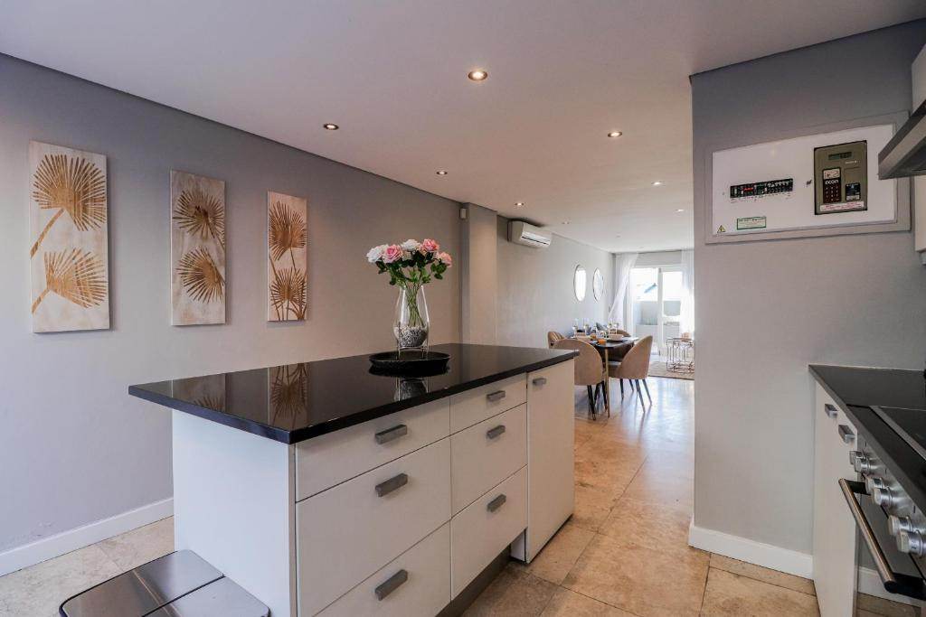 This trendy apartment is just a 6-minute drive from the V & A Waterfront where you can satisfy both your appetite and shopping desires or treat yourself to a ride on The Cape Wheel. In the colder Winter months, the Aquarium and Scratch Patch are a must, situated just opposite the V & A Waterfront or a trip to the City Bowl Market located 11 minutes away on Hope Street. The apartment is just a 5-minute drive from the busy Cape Town CBD and the Cape Town Stadium in Greenpoint where you will also find the beautiful Greenpoint Park for those lovely warm summer days. In a 5-minute walk from the apartment, you will find the Cape Quarter Mall to quickly restock your kitchen or catch a bite to eat.
